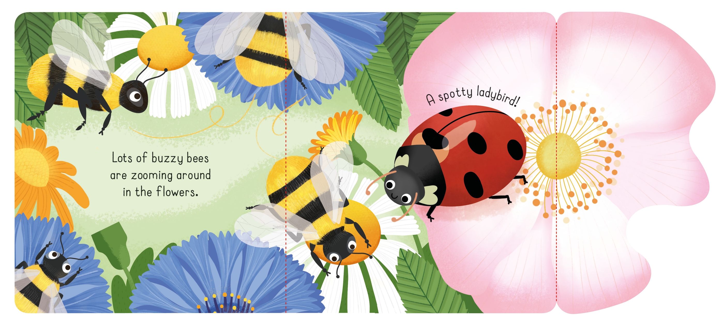 Follow a spotty ladybird as she explores outdoors, and lift petals and leaves to meet lots of other bugs along the way. This charming book for little children has lots to discover and talk about on every page, from buzzy bees visiting flowers to a line of ants and munching caterpillars.