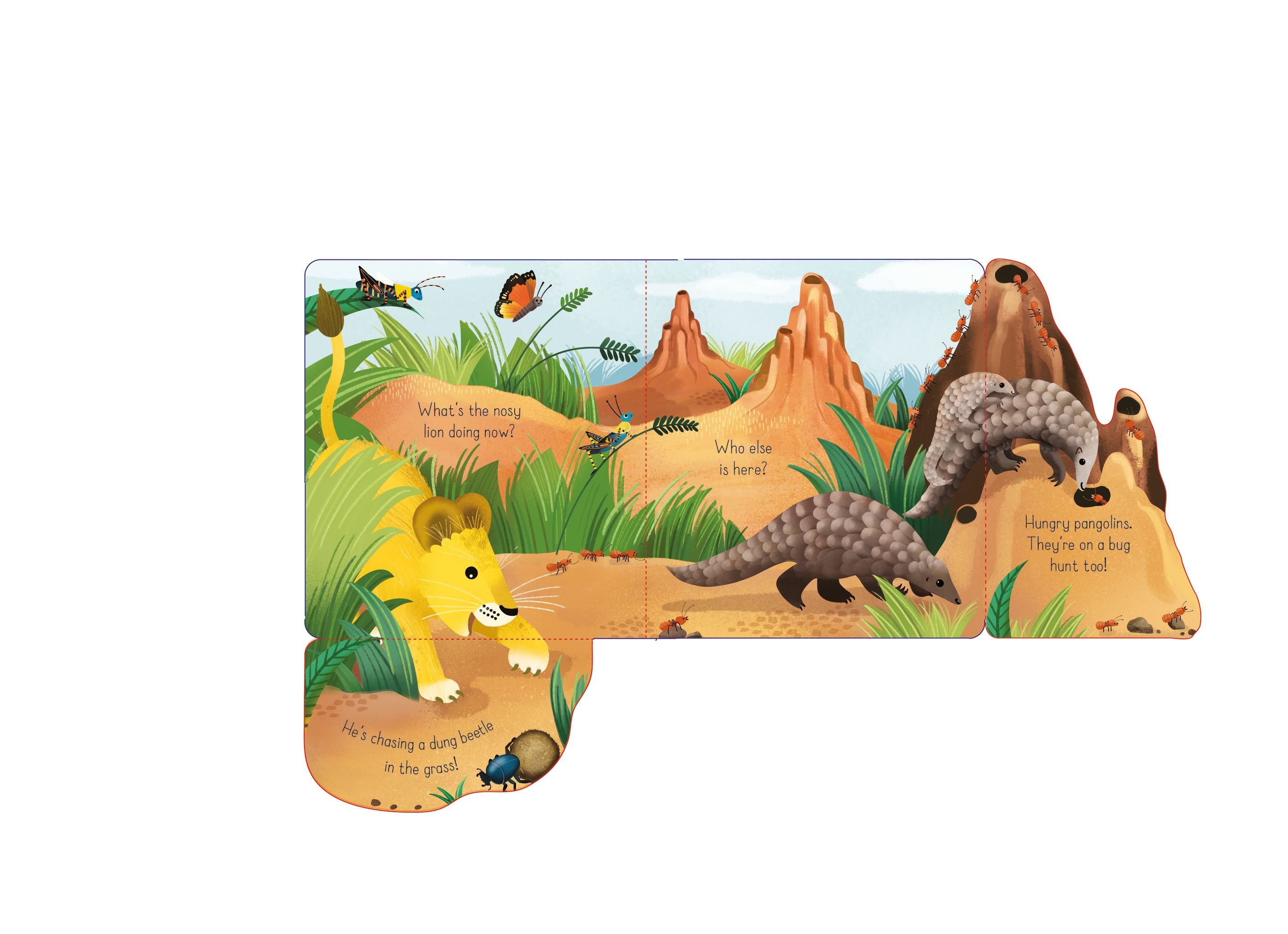 Follow a nosy lion cub around the grassland to discover a tall giraffe, a baby elephant squirting water and a funny looking warthog! Babies will delight in discovering safari animals in this sweet, sturdy flap book. Designed especially to encourage developing motor skills with chunky, shaped flaps, this is a lovely addition to the Little Lift and Look library for babies and toddlers.
