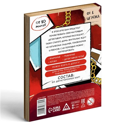 Почувствуйте себя настоящим детективом. В этой игре вам предстоит примерить на себя роль детектива, который расследует тайну старого дома. Внутри вас ждёт почти 40 логических задачек, головоломок и ребусов. С их помощью можно натренировать внимание, логику, мышление и детективное чутьё.