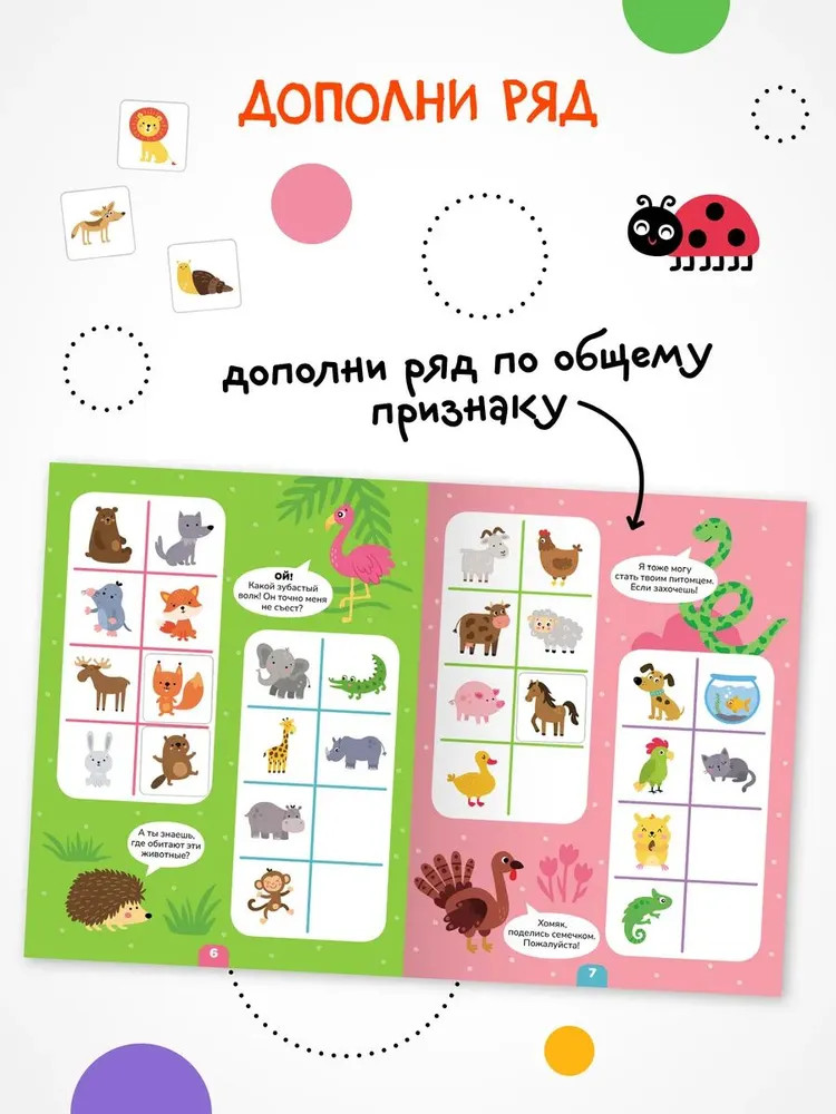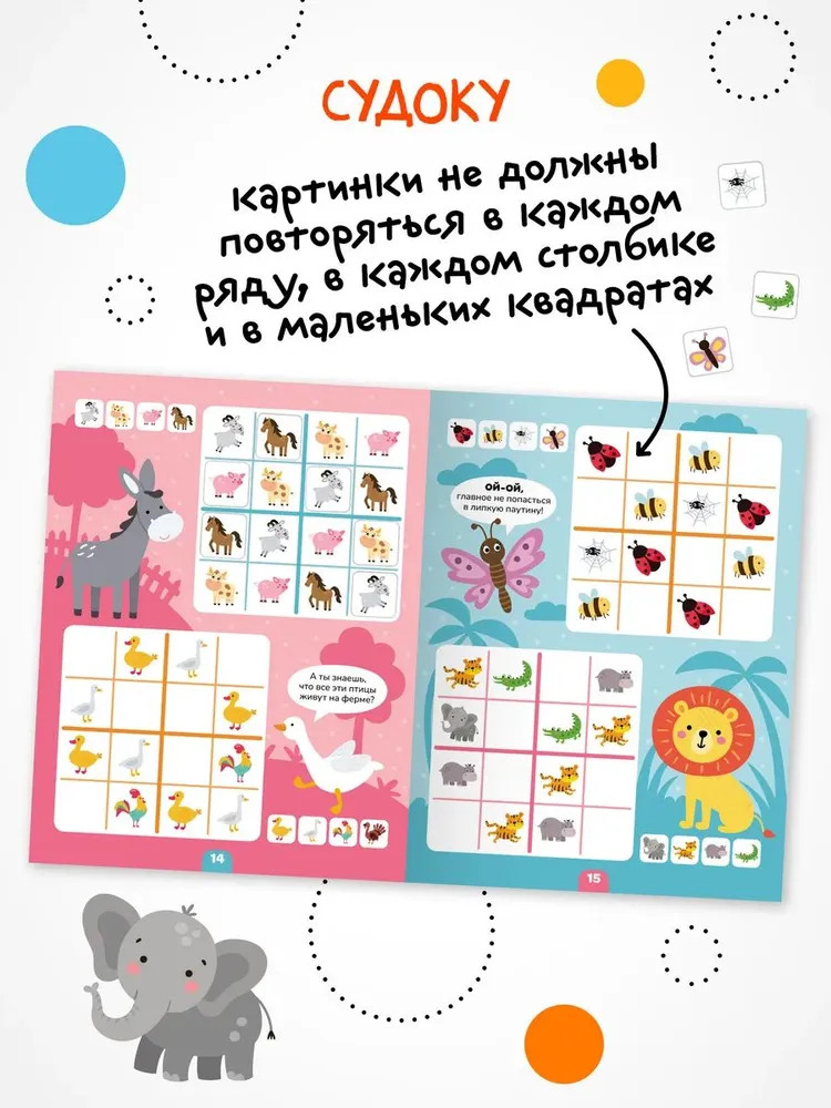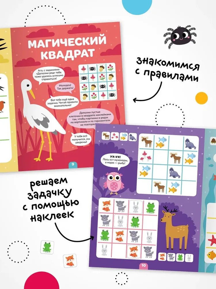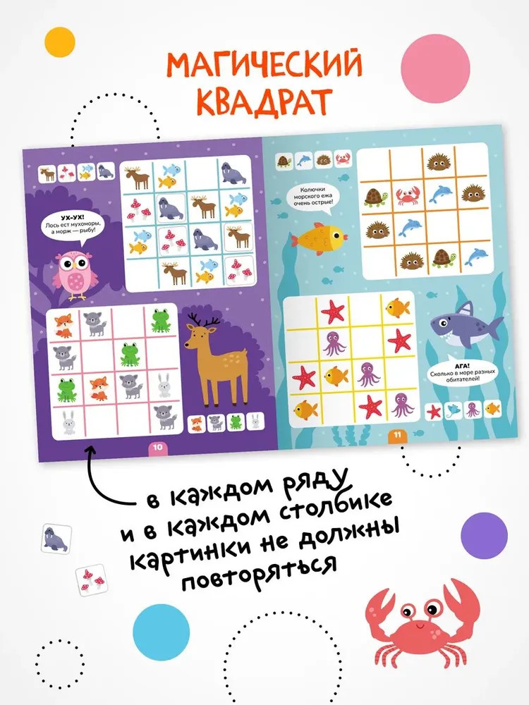 Книга «Животные» серии «Логика с наклейками» поможет ребенку весело и с пользой провести время, расширить кругозор, потренировать память и логическое мышление. Любимый вид деятельности практически каждого ребенка — клеить наклейки — мы совместили с решением популярных заданий на логику. В каждой книжке четыре вида логических задачек — продолжи ряд, дополни ряд, магический квадрат и судоку. И на каждой страничке ребенка ждут веселые животные! Задания адаптированы для детей от 4 лет и расположены от простого к сложному. Для детей помладше может понадобиться помощь взрослого, но начиная с 5 лет ребята уже вполне смогут справиться с заданиями самостоятельно.
