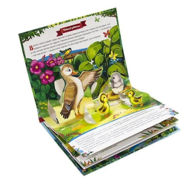 Любимая сказка «Гадкий утёнок» в формате книги-панорамки с объемными иллюстрациями. Книга сделана из качественного и плотного картона, который имеет высокую прочность и влагоотталкивающие свойства. Яркая и контрастная печать делает картинки максимально насыщенными. Порадуйте своего ребёнка уже знакомой и полюбившейся многим сказкой про приключения гадкого утёнка с объёмными иллюстрациями, которые удивят вашего малыша!