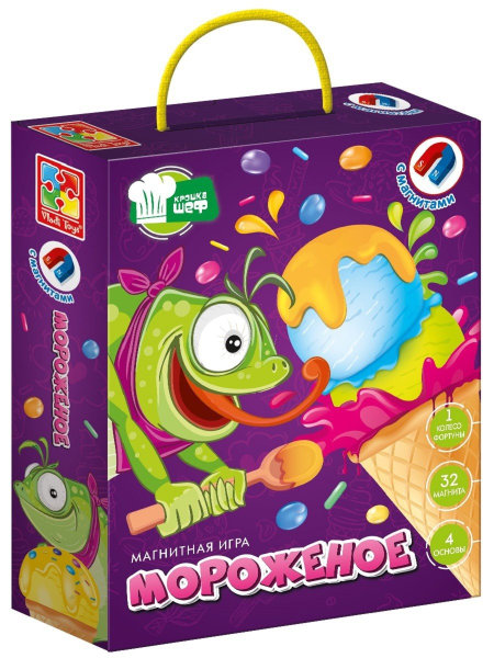 Крошка Шеф умеет готовить самое вкусное мороженое в мире! Все кондитеры мечтают поучиться у этого талантливого мышонка!И сегодня он приглашает посетить его мастер-класс. Апельсиновое, ягодное, шоколадное… Ты сможешь приготовить мороженое любого вкуса! А чтобы было еще веселее, Шеф предлагает позвать друзей и готовить мороженое наперегонки! Для этого крутите по очереди колесо фортуны и выполняйте необходимые действия. Взять вафельный стаканчик, взять шарик мороженого, вернуть один шарик на поле… Кто же справится быстрее? Ведь победит тот, кто первым полностью соберёт своё мороженое! Играйте, веселитесь и тренируйте внимание, память и фантазию.