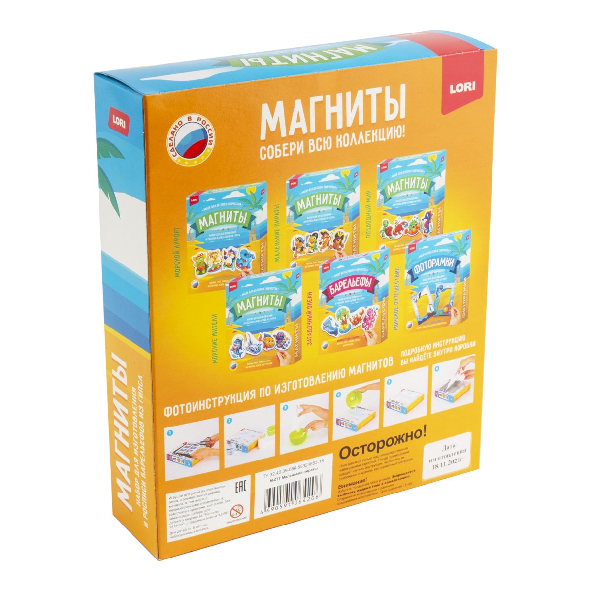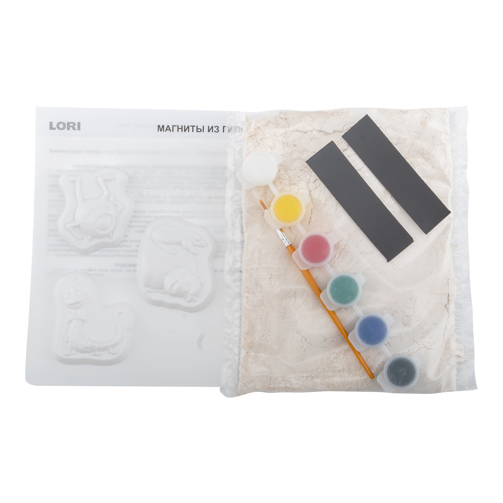 Удивительный набор для детского творчества от бренда Lori позволит мальчикам и девочкам интересно провести досуг, самостоятельно создав из гипса различные фигурки. В технологическом плане процесс изготовления барельефа несложен. После отлива фигурок в специальных формочках, необходимо раскрасить а затем прикрепить к холодильнику или любой металлической поверхности.