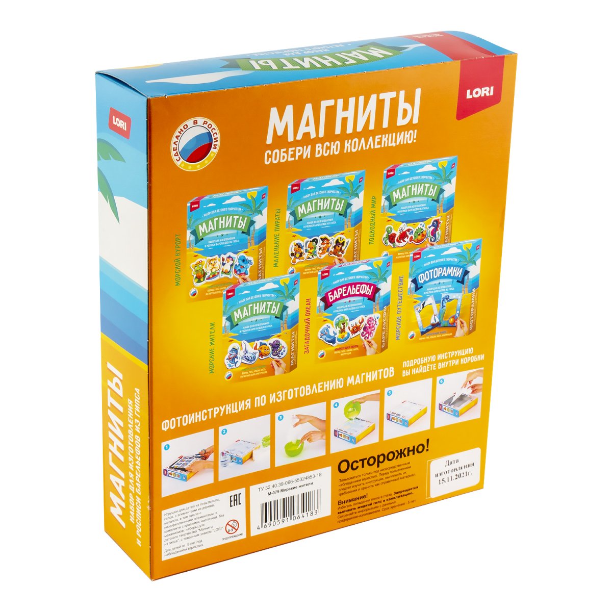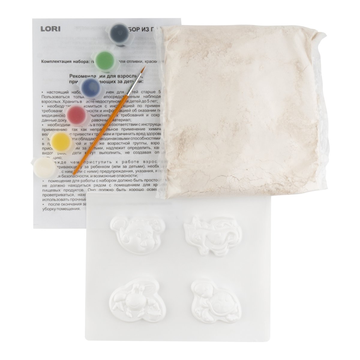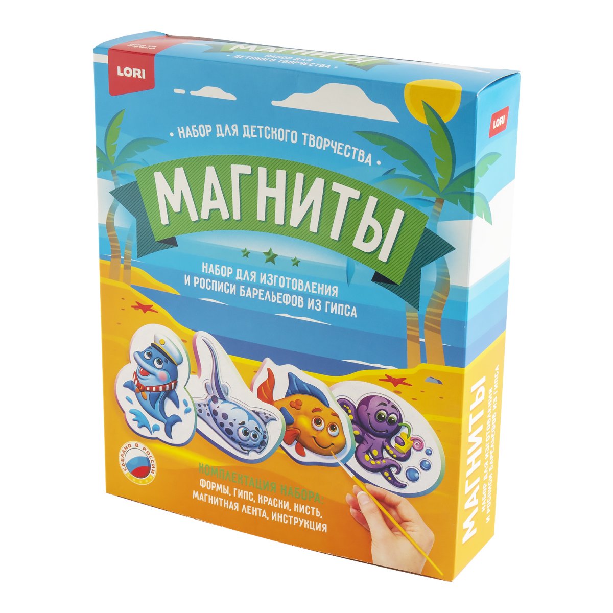 Удивительный набор для детского творчества от бренда Lori позволит мальчикам и девочкам интересно провести досуг, самостоятельно создав из гипса различные фигурки. В технологическом плане процесс изготовления барельефа несложен. После отлива фигурок в специальных формочках, необходимо раскрасить а затем прикрепить к холодильнику или любой металлической поверхности.