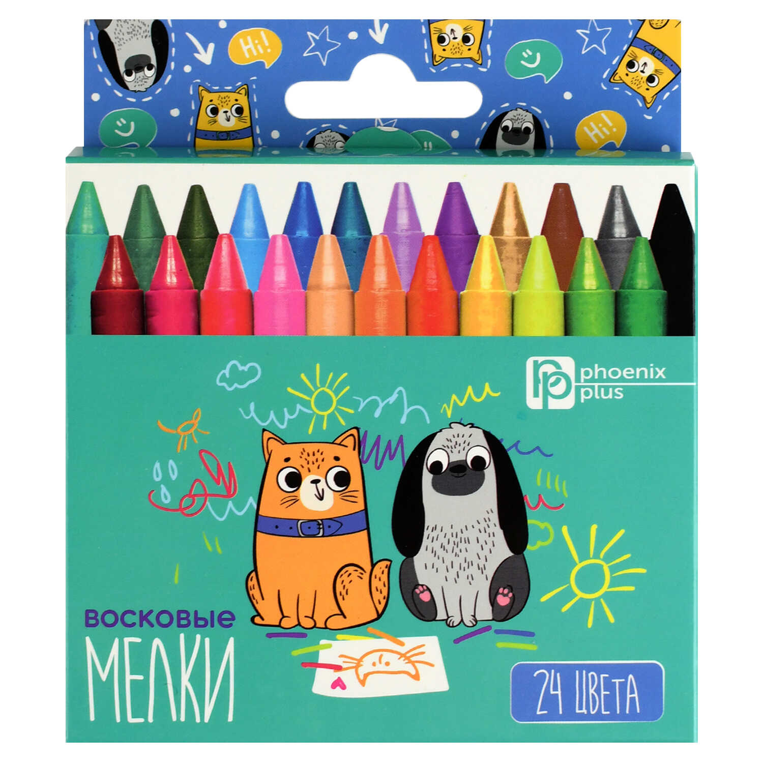 Мелки восковые арт. 69655 / 12 КОТ И ПЕС (24 цвета (штуки) в наборе, размер: 88х8 мм, форма корпуса: круглая, бумажная обертка на корпусе, картонная коробка с европодвесом).