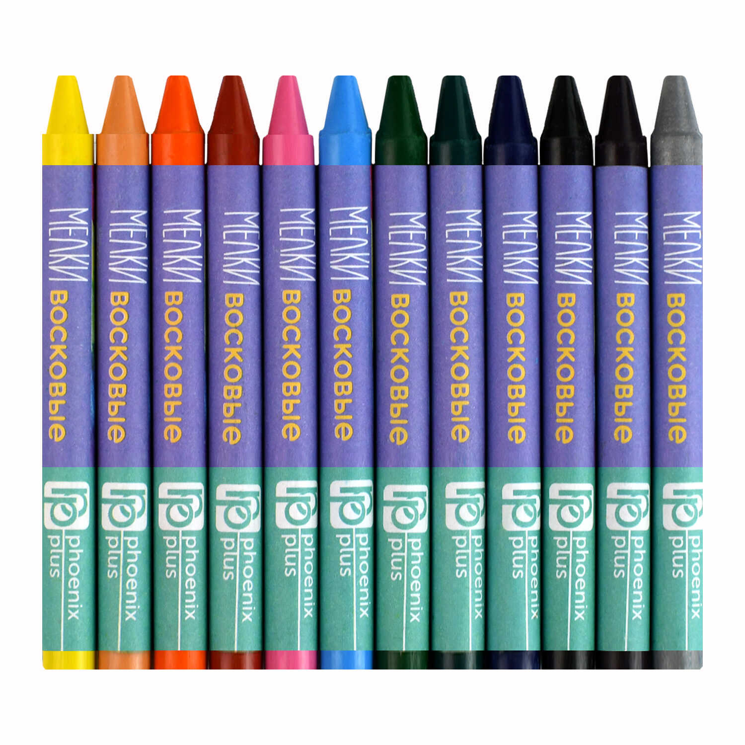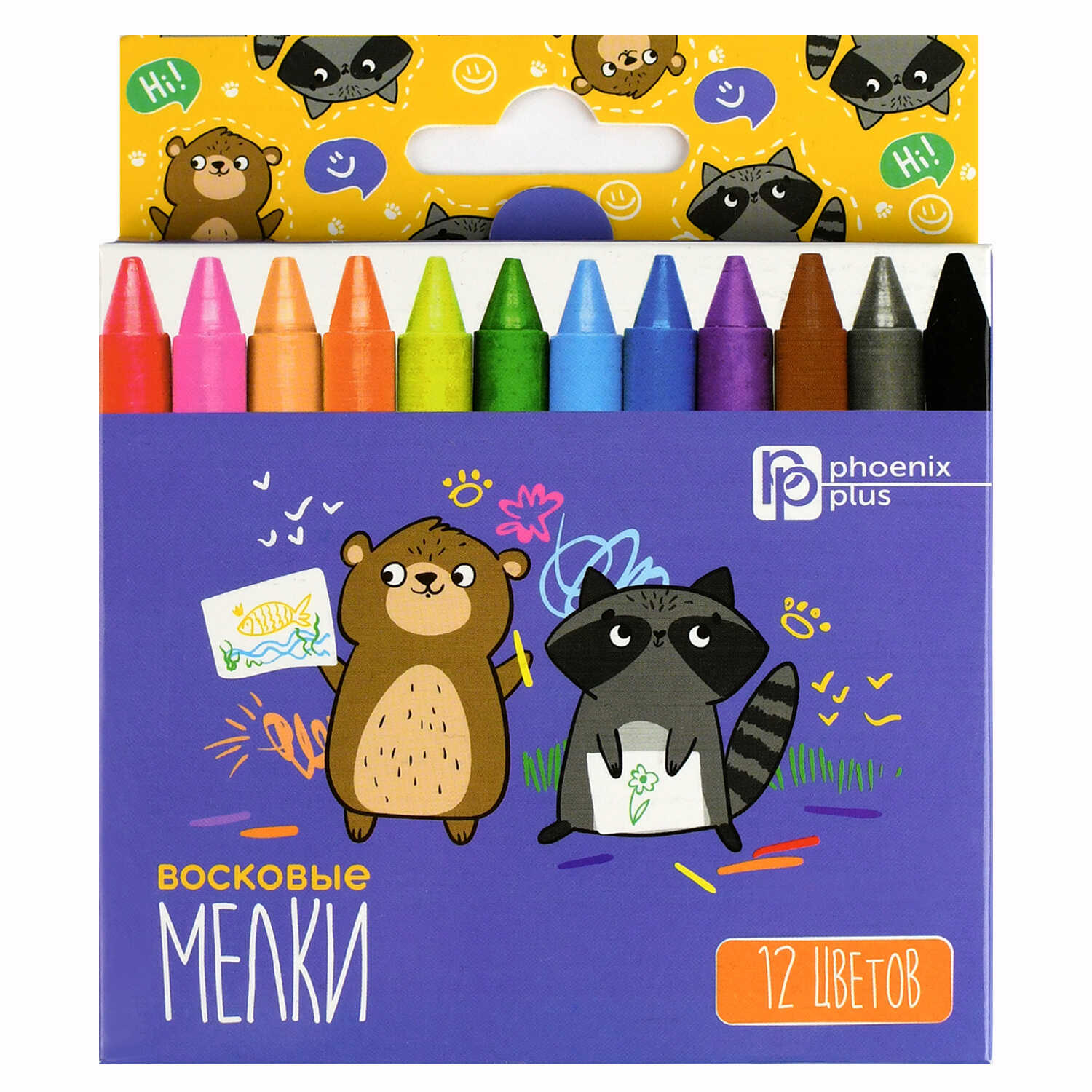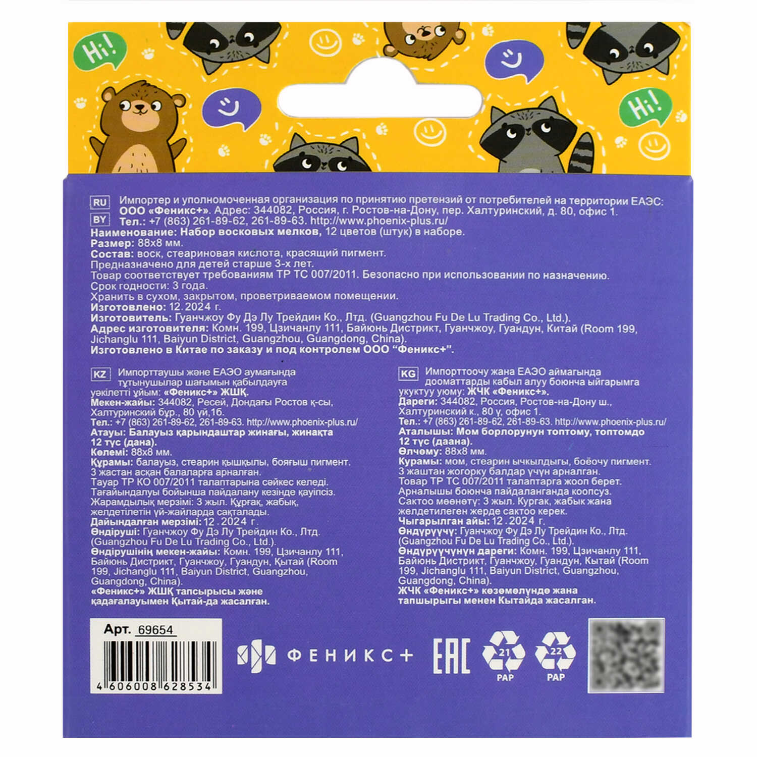 Мелки восковые арт. 69654 / 24 МИШКА И ЕНОТ (12 цветов (штук) в наборе, размер: 88х8 мм, форма корпуса: круглая, бумажная обертка на корпусе, картонная коробка с европодвесом).
