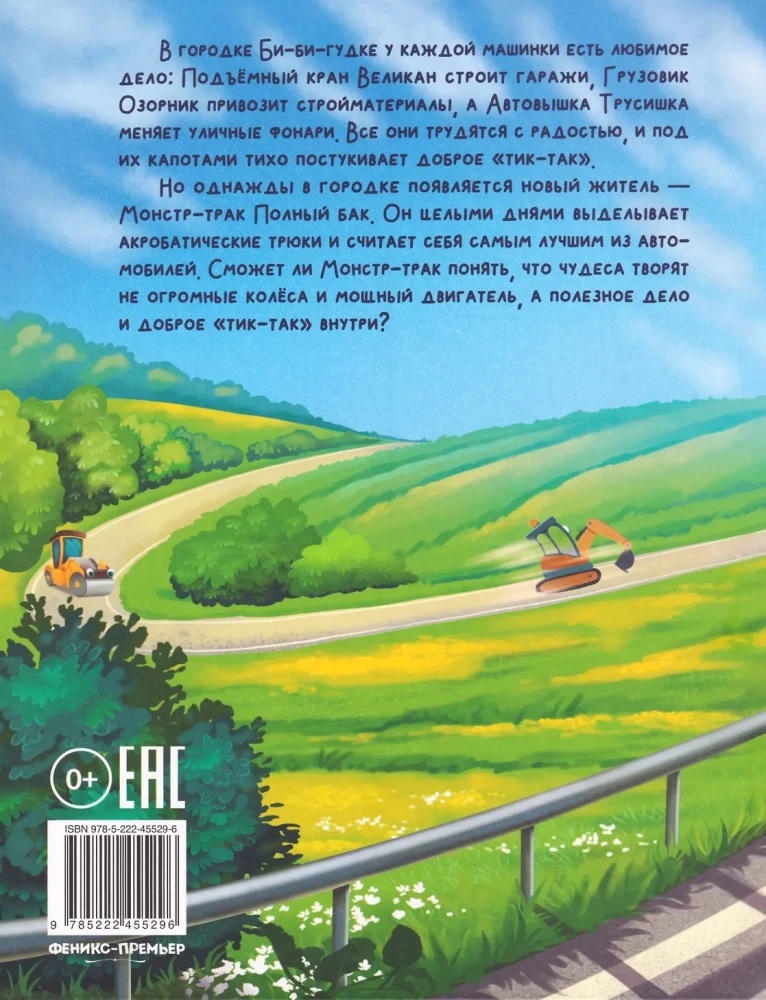 В городке Би-би-гудке у каждой машинки есть любимое дело: Подъёмный кран Великан строит гаражи, Грузовик Озорник привозит стройматериалы, а Автовышка Трусишка меняет уличные фонари. Все они трудятся с радостью, и под их капотами тихо постукивает доброе "тик-так”. Но однажды в городке появляется новый житель — Монстр-трак Полный бак. Он целыми днями выделывает акробатические трюки и считает себя самым лучшим из автомобилей. Сможет ли Монстр-трак понять, что чудеса творят не огромные колёса и мощный двигатель, а полезное дело и доброе "тик-так" внутри?