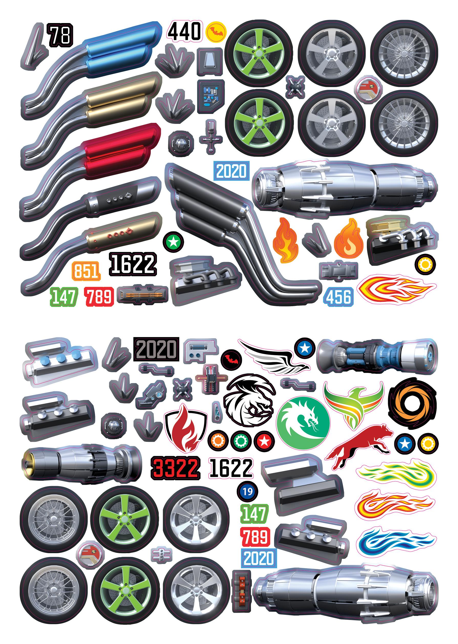 Внедорожники, спортивные автомобили и другие модели дополни различными деталями: дисками, выхлопными трубами, логотипами и т.д..