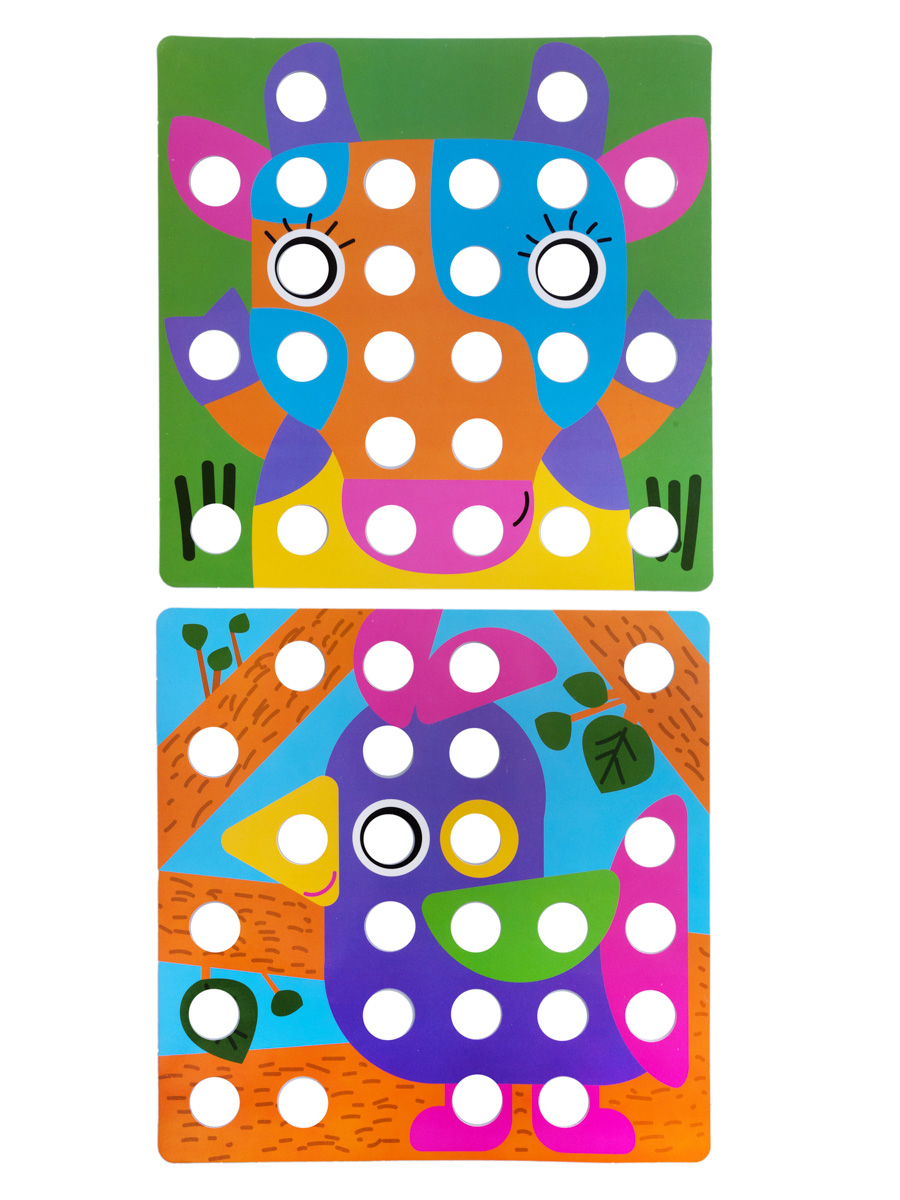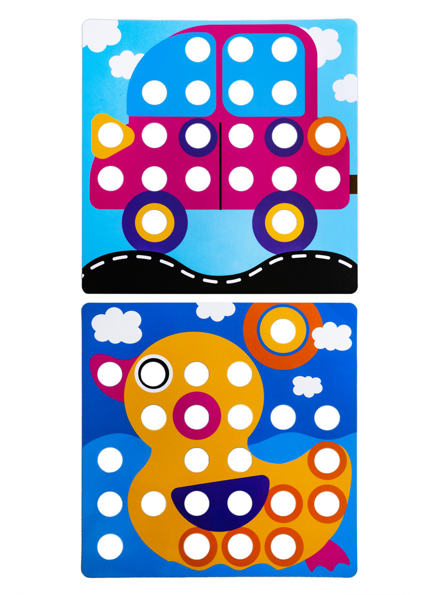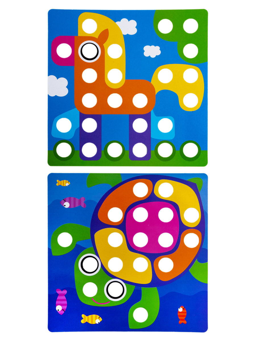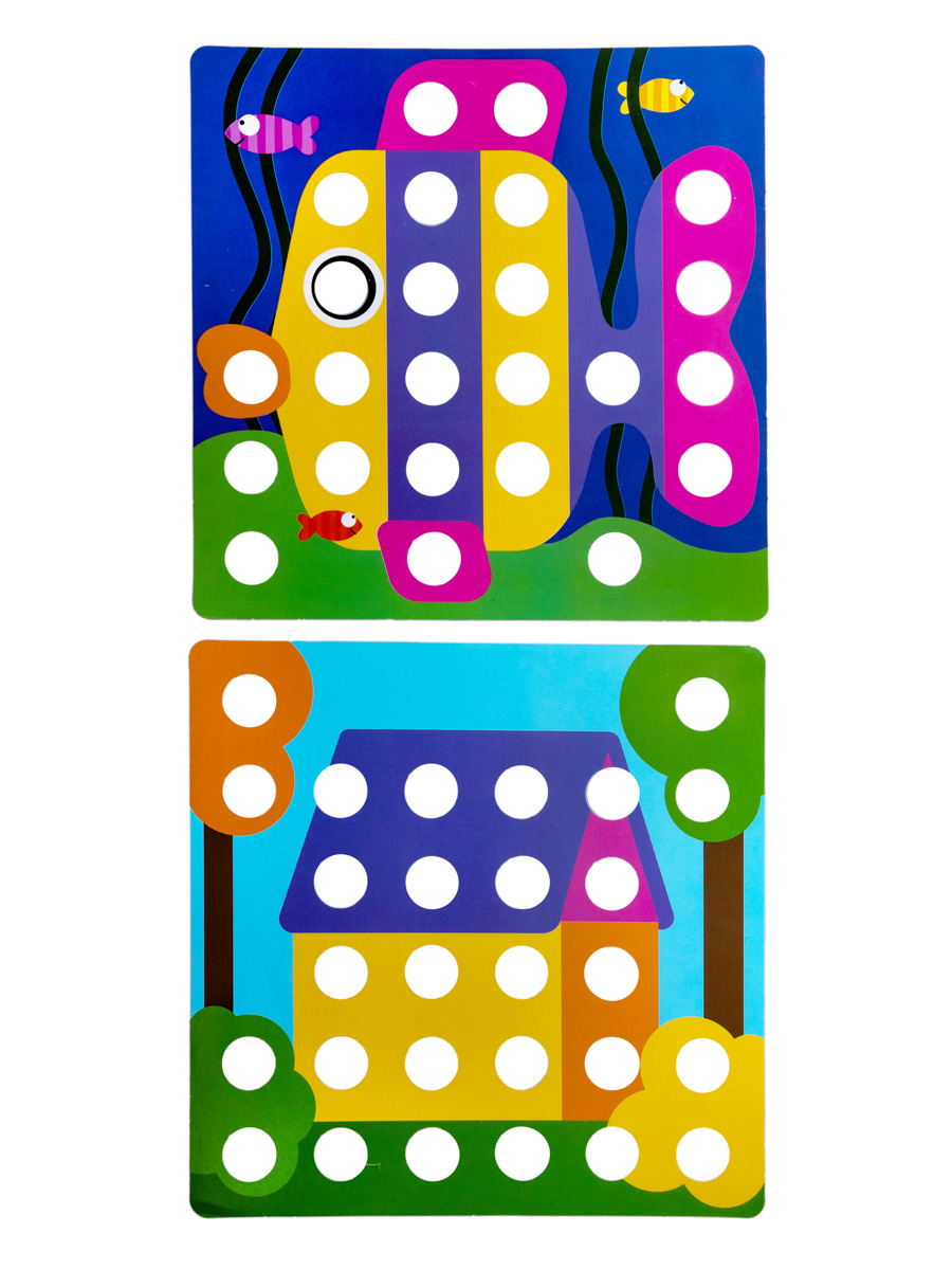 Мозаика складывается на специальном поле с отверстиями по выбранной картинке.
