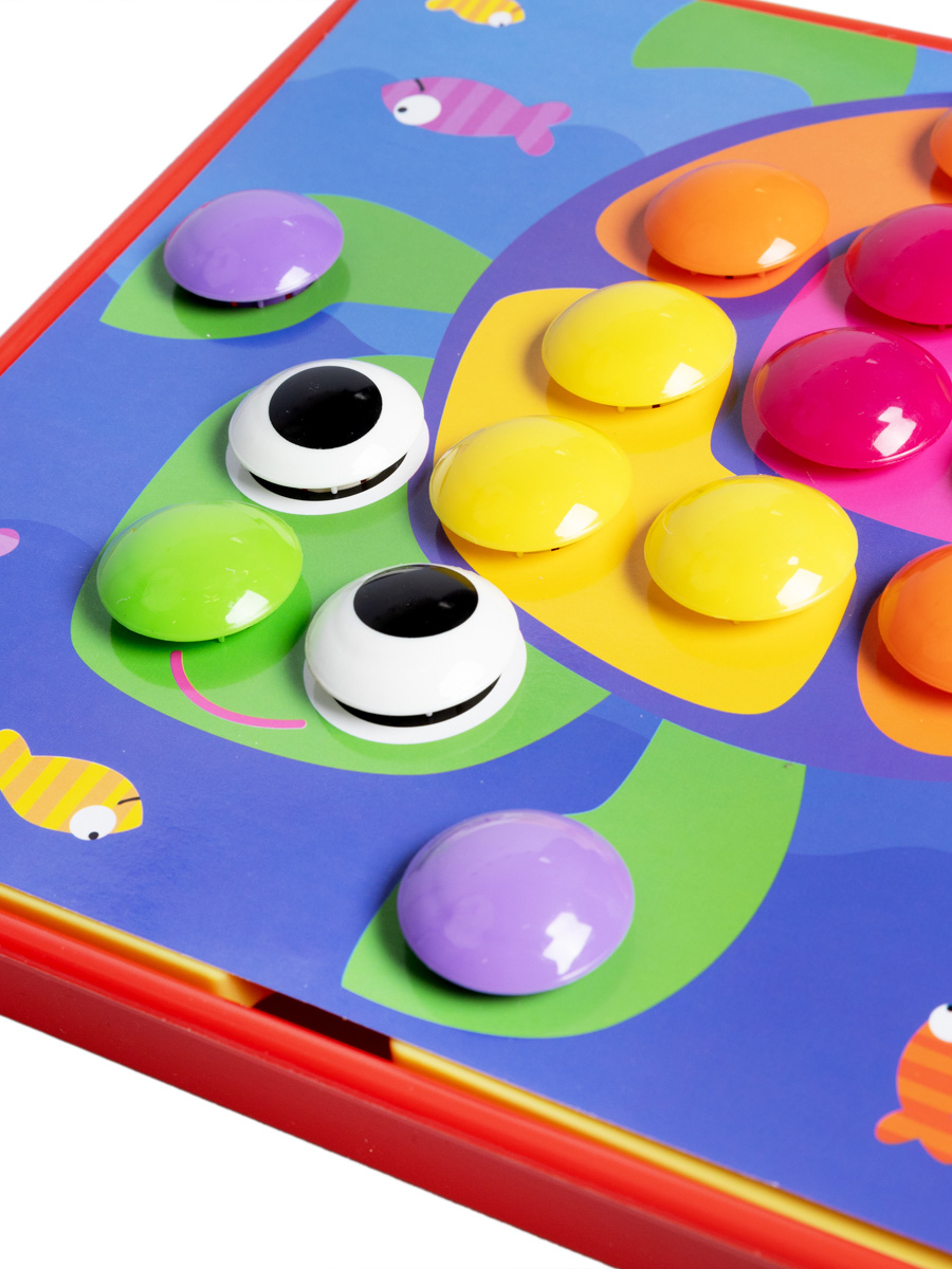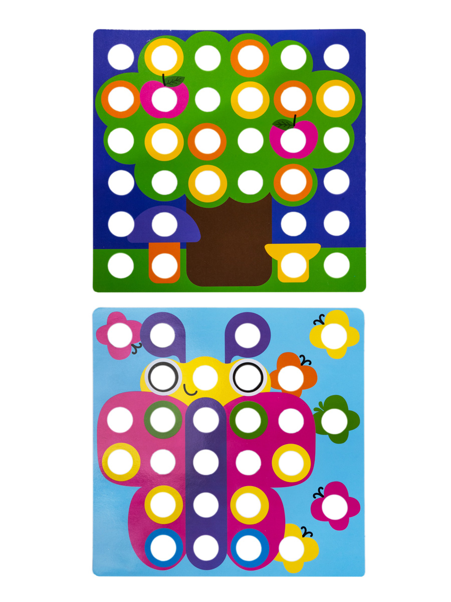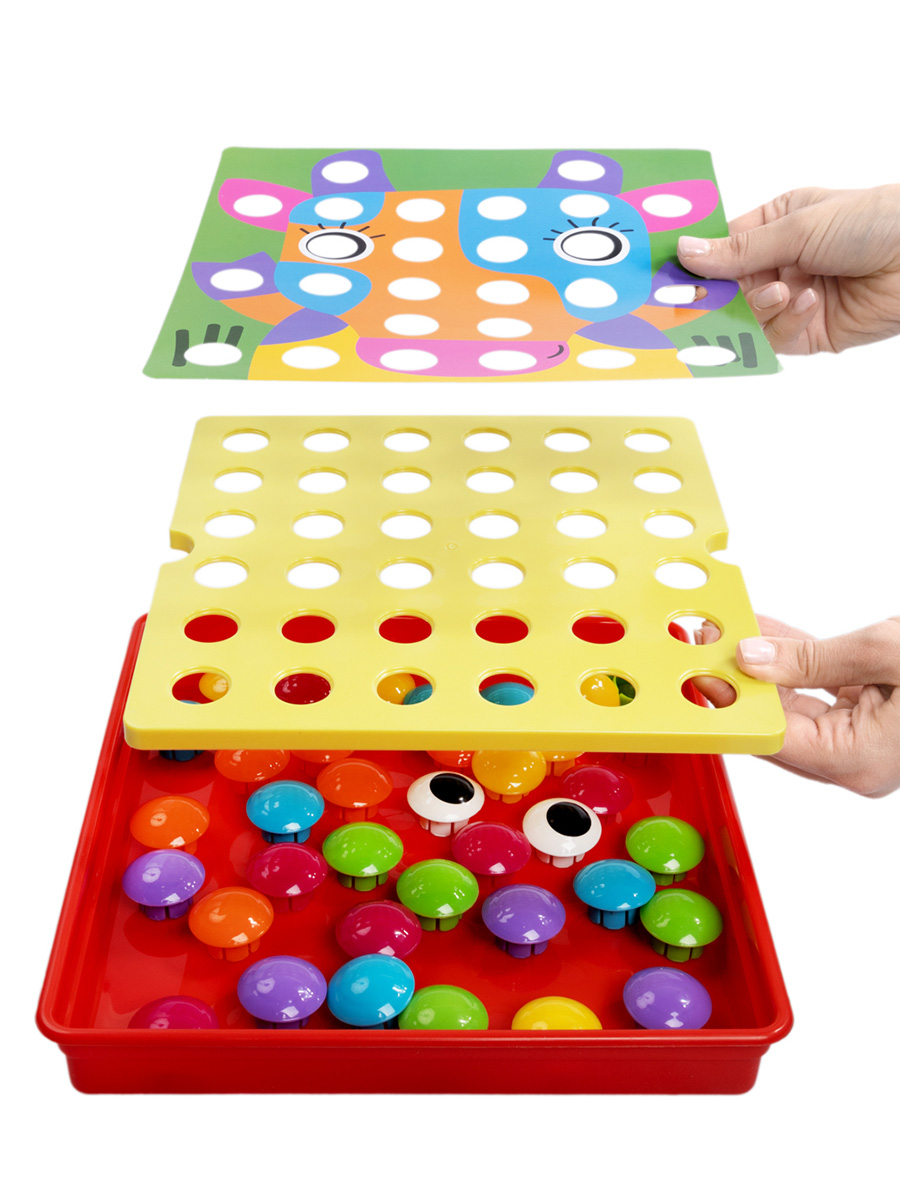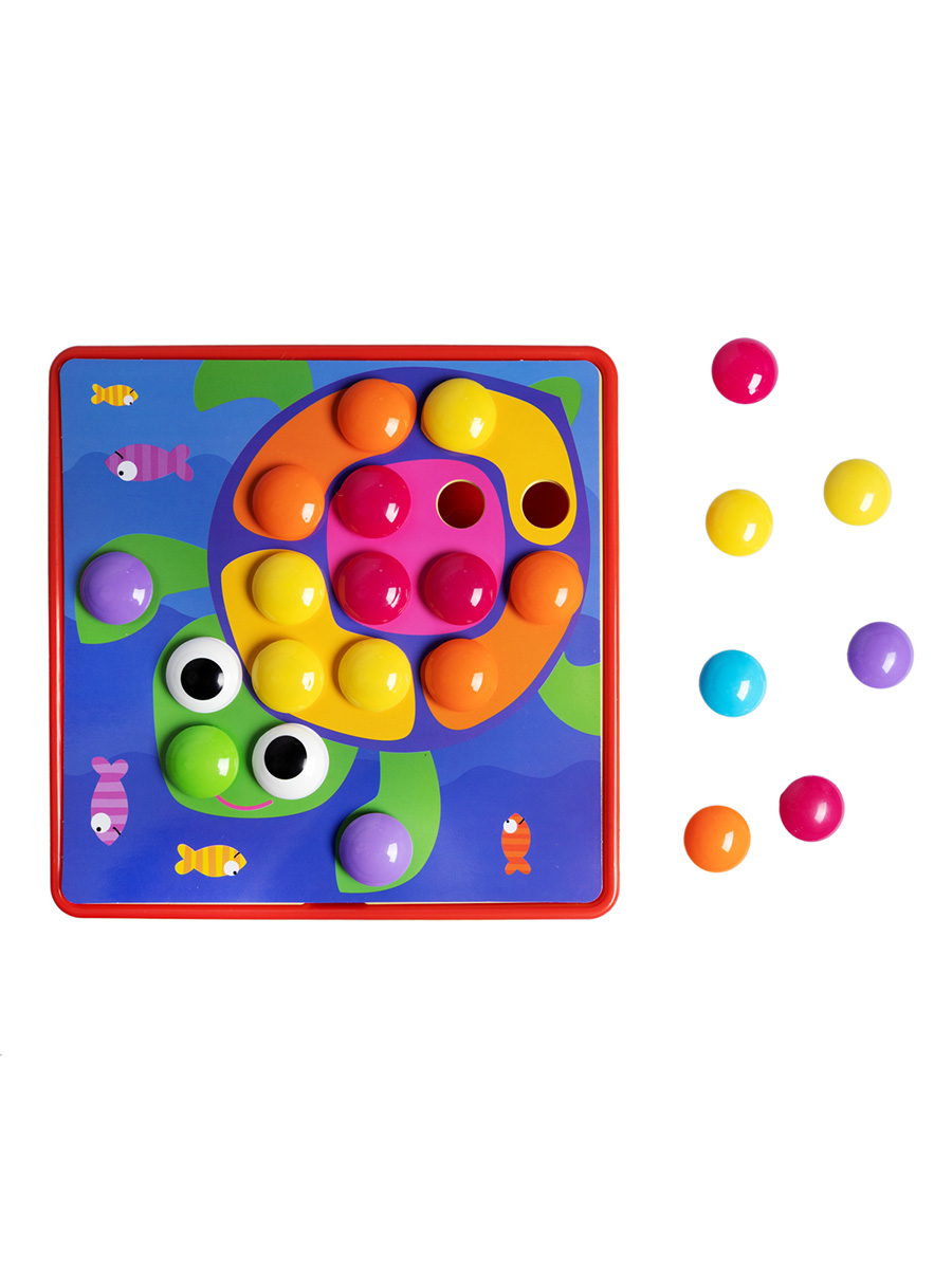 Мозаика складывается на специальном поле с отверстиями по выбранной картинке.