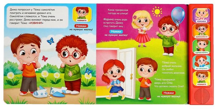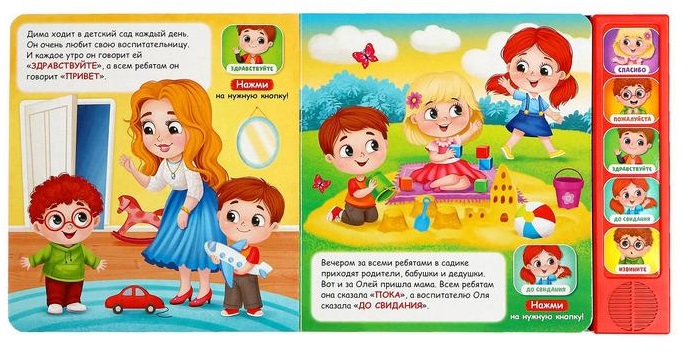 Знакомить ребёнка с правилами вежливого общения важно с самого раннего возраста. Освоить этот навык в игровой форме поможет музыкальная книга. С ней малыш познакомится с пятью самыми главными вежливыми словами и научится их правильно произносить.