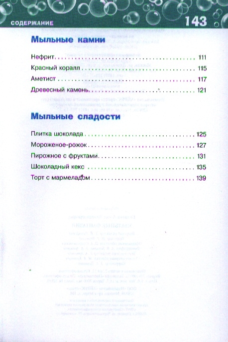 Яркое, душистое, нежное и полезное - такое мыло вы сможете сделать сами! Книга рассчитана на тех, кто первый раз приступает к этому увлекательному занятию. Материал расположен от простого к сложному. Начав с обычного прямоугольного мыла, в конце вы сможете делать разноцветные мыльные камни и пышные пирожные, которые с трудом отличишь от настоящих. Особенность издания в том, что в нём раскрывается множество секретов мыловарения: как плавить специальную мыльную основу, как правильно её окрашивать и ароматизировать, как избавиться от пузырьков, как сделать формы своими руками. С этими советами процесс приготовления мыла будет лёгким и увлекательным. Адресовано детям 11-16 лет, их родителям и всем любителям мыловарения.