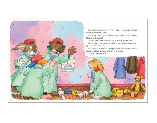 В этом году мышонок Тим идет в новую группу. Ребята там постарше, они кажутся такими взрослыми и умными. Тиму очень хочется с ними подружиться, но те не принимают его в свою компанию да еще начинают обижать.