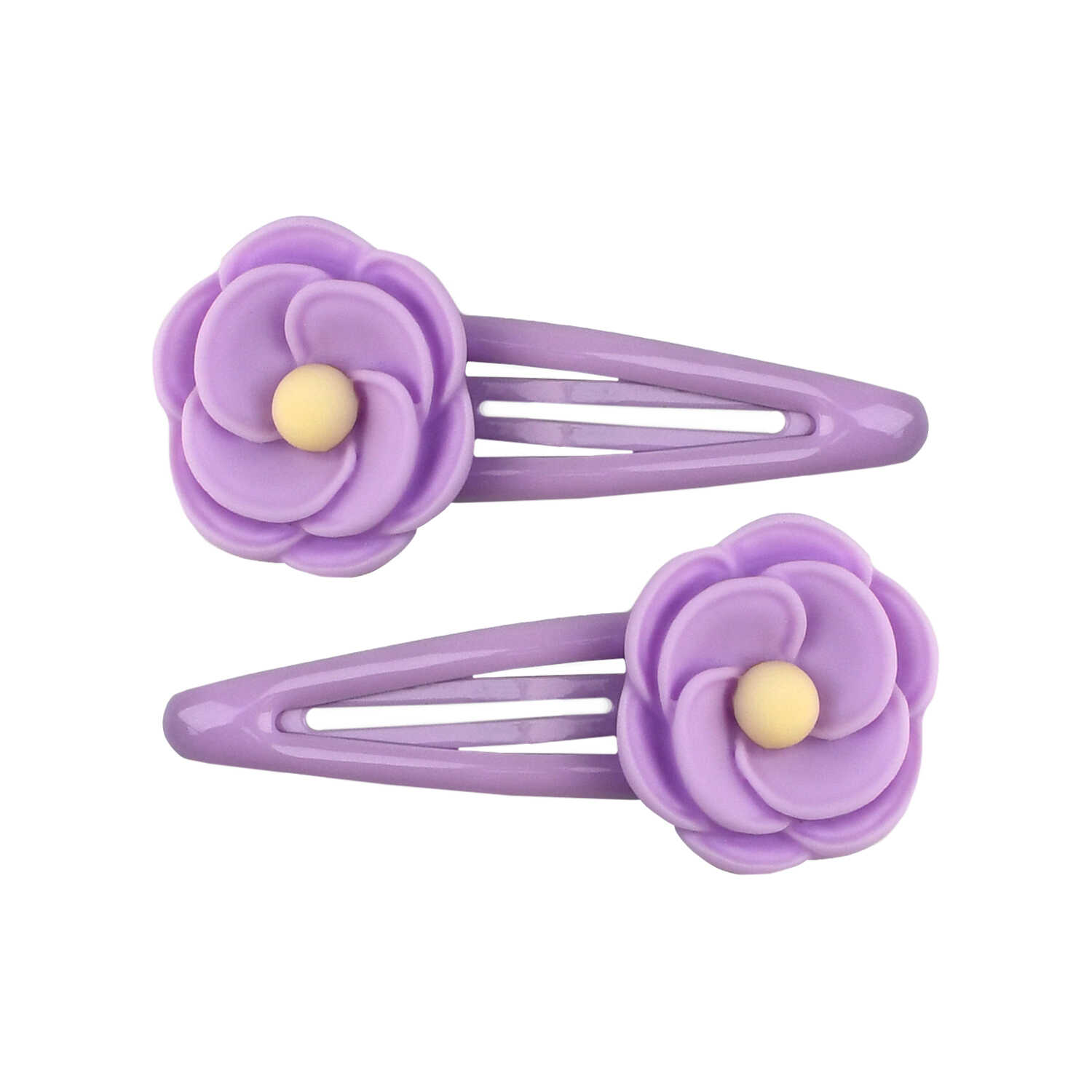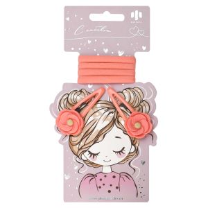 Набор аксессуаров для волос арт. 71762 / 10 ЦВЕТОЧКИ (4 резинки, 2 заколки в наборе, заколки: «клик-клак», глянцевые, ЦВЕТОЧКИ 5,3 см, черный металл, вулканизированная резина, полиэстер, полиэфирная смола, цвет: сиреневый, подложка из мелованного картона + ПЭТ-пакет с европодвесом)