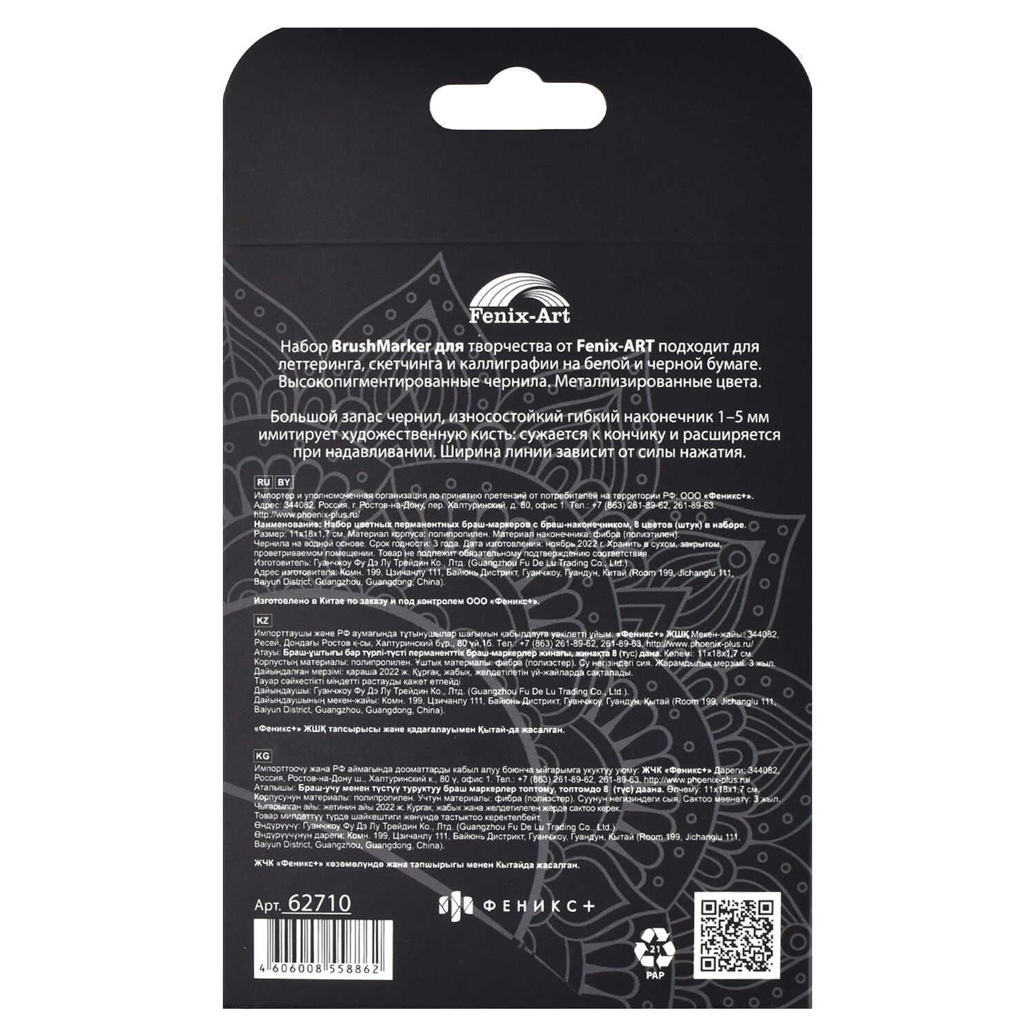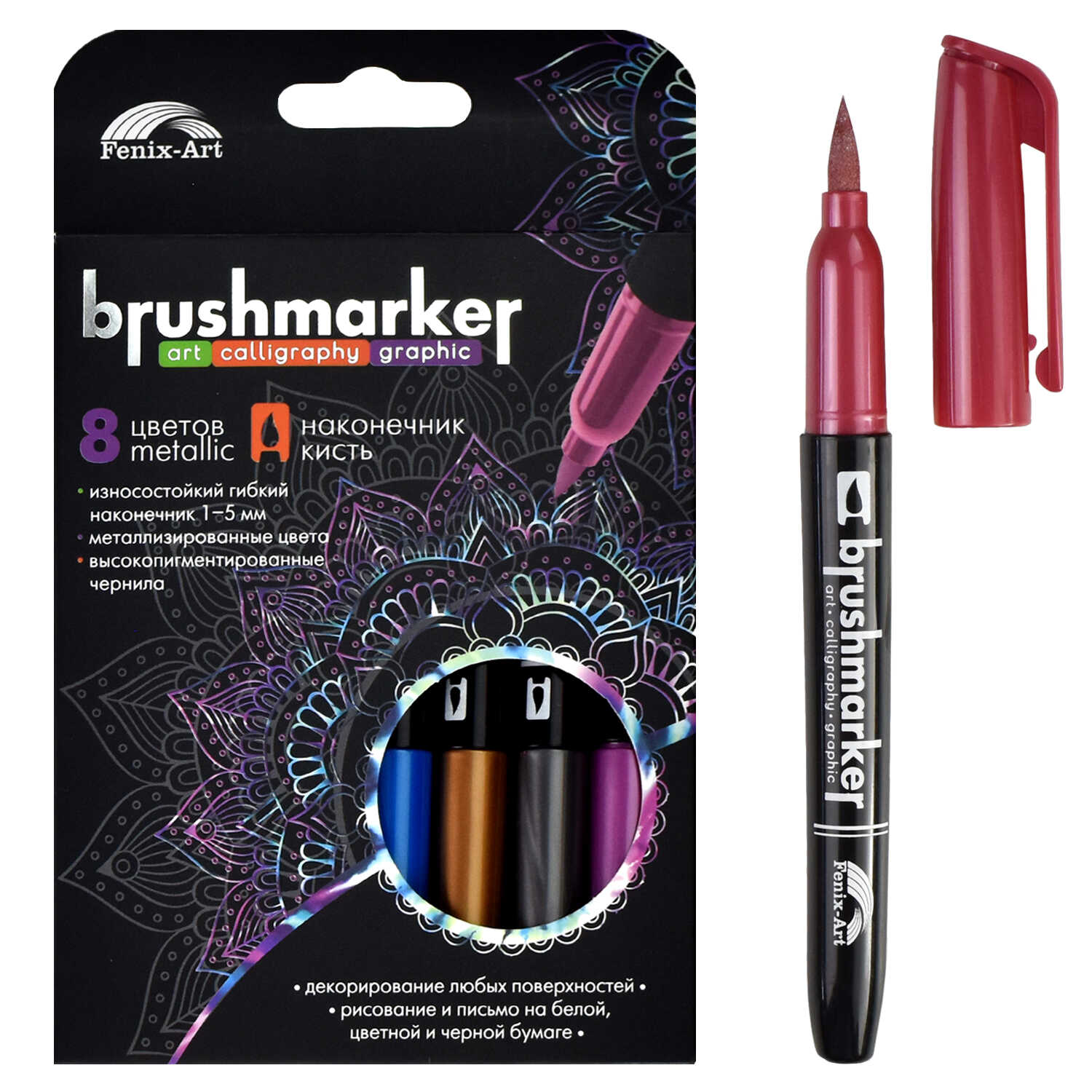 Набор браш-маркеров арт. 62710 / 12 МЕТАЛЛИК (8 цветов (штук) в наборе, размер: 11х18х1,7 см, полипропилен, фибра (полиэстер), форма наконечника: кисть, отделка: УФ-печать, металлизированный эффект, картонная коробка с европодвесом и вырубкой).