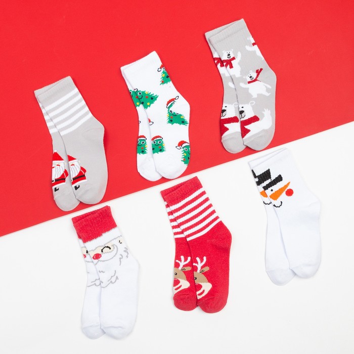 Набор детских носков "С Новым Годом" 6 пар, 16-18 см Набор детских носков "С Новым Годом" 6 пар, 16-18 см