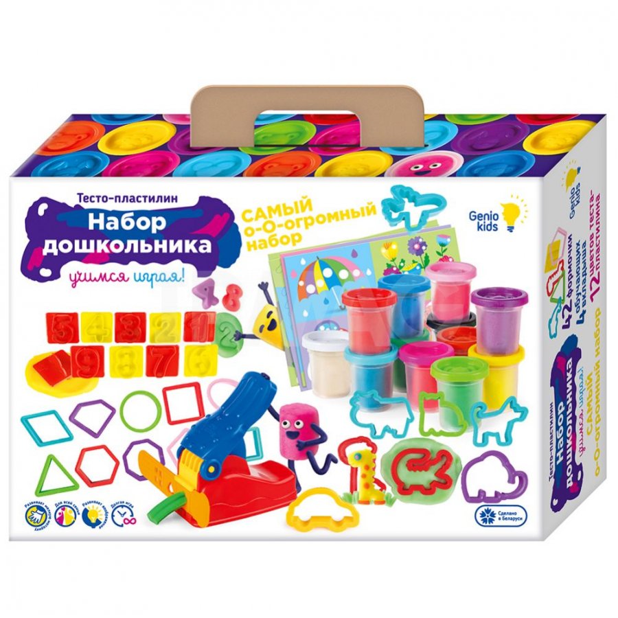 «Набор дошкольника» от белорусского бренда Genio Kids – это игра, творчество и развитие в одной коробке! Набор вдохновляет и детей, и взрослых на увлекательные занятия и удивляет своим богатым составом. Что же внутри? 32 формочки зверей, геометрических фигур персонажей и 10 штампиков-цифр; давилка со сменными вставками и фигурный шприц; 4 обучающих вкладыша с заданиями; 600 грамм теста-пластилина 12 цветов в баночках с крышечками-штампиками. Занятия с «Набором дошкольника» помогают маленьким непоседам стать более усидчивыми, развивают мелкую моторику, логику и умение концентрироваться.