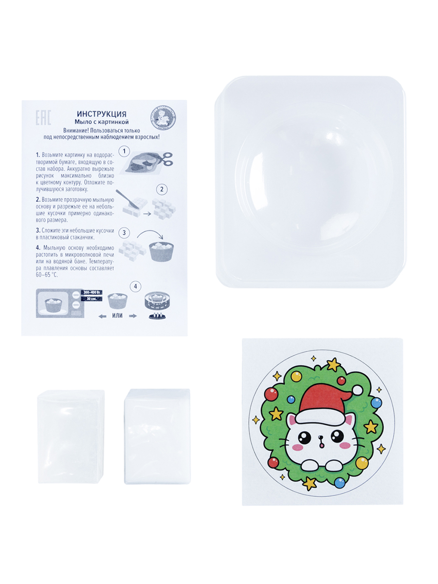 Набор для изготовления мыла своими руками "Новогодний венок" - это набор, с помощью которого ребенок изготовит кусочек мыла с очаровательной картинкой! Мыло, созданное своими руками, станет замечательным знаком внимания для родных и близких.