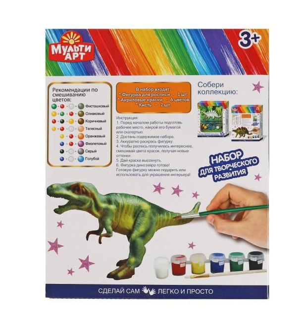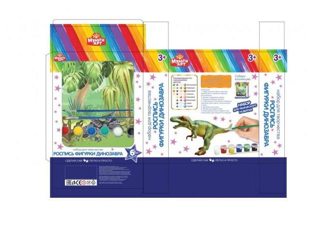 С этим набором ребёнок самостоятельно или с помощью родителей сможет расписать реалистичную фигурку динозавра. Готовое изделие можно подарить близким или использовать для украшения интерьера.
