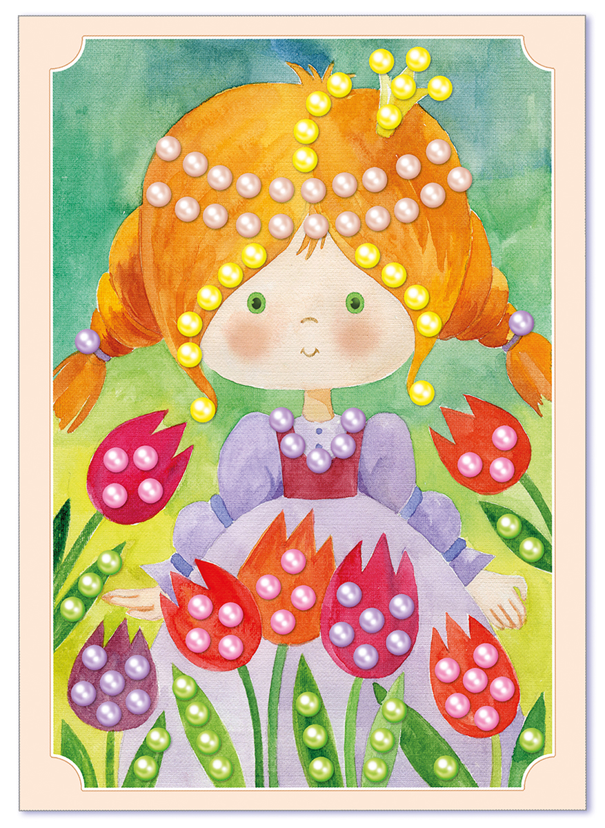 На качественной картонной основе с изображением «Принцессы Тони» отмечены места для бусин, ребенку необходимо аккуратно наклеить бусины нужного цвета на соответствующие точки.