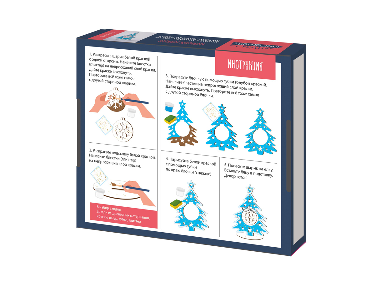 - детали из древесного материала (елка, шарик, подставка) - 3 шт.