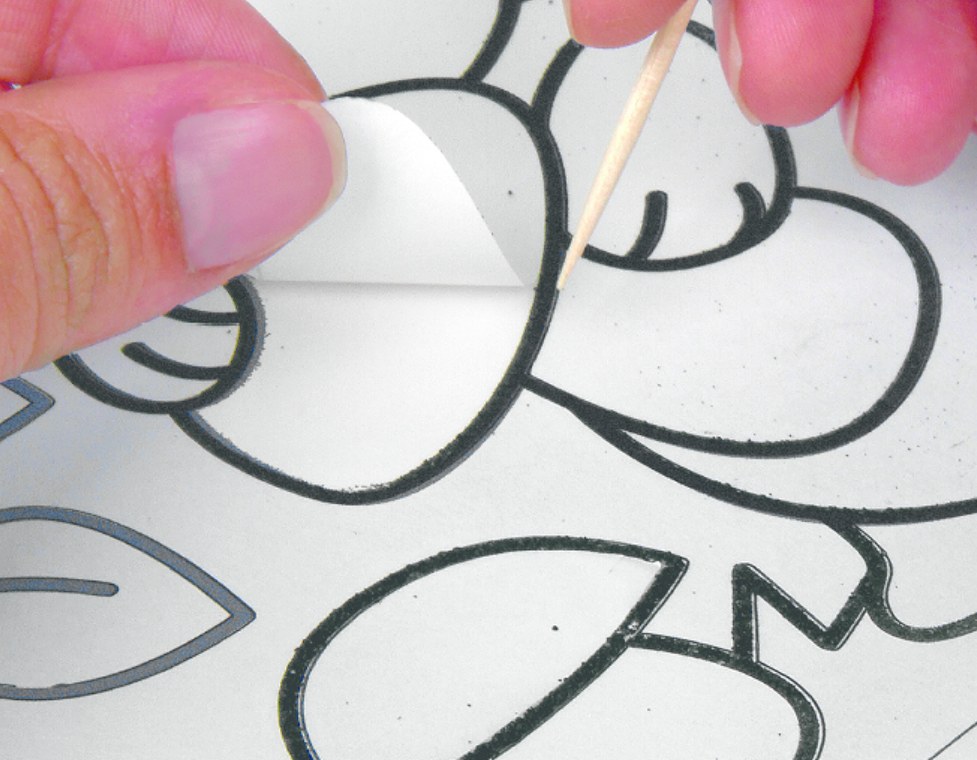 2. Снимите верхний, защитный слой бумаги с участков, которые будут одного цвета.