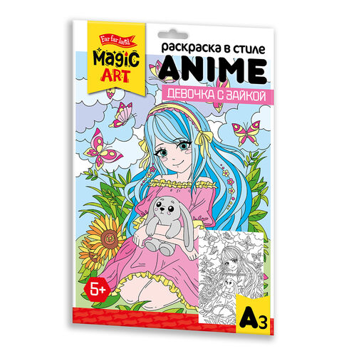 Набор для творчества. Раскраска в стиле ANIME "Девочка с зайкой" (формат А3) 05151