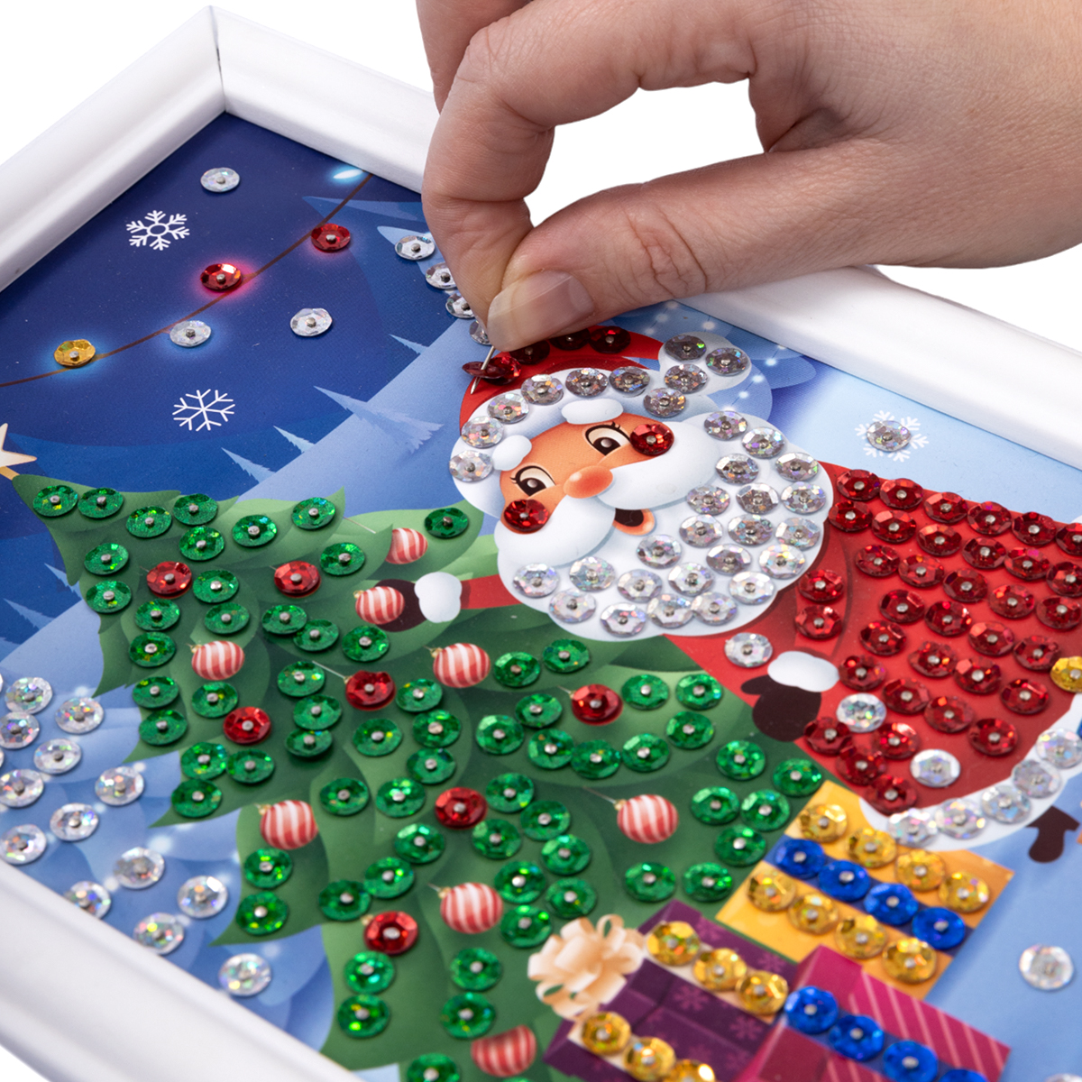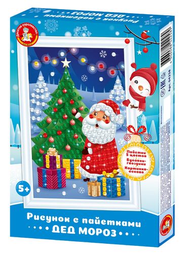 Создайте свой маленький шедевр с помощью творческого набора «Дед Мороз». Красочная картина из пайеток станет прекрасным украшением новогоднего интерьера и приятным подарком для ваших друзей и близких.
