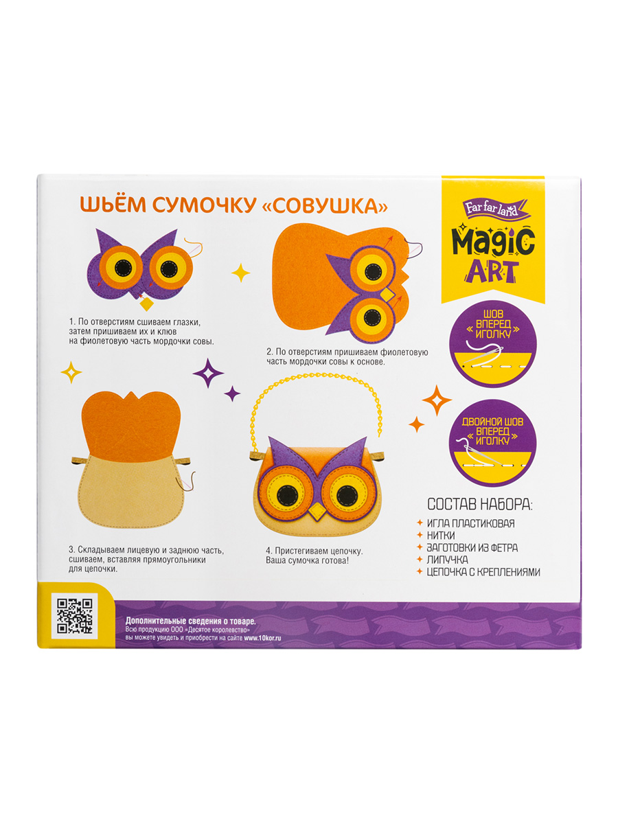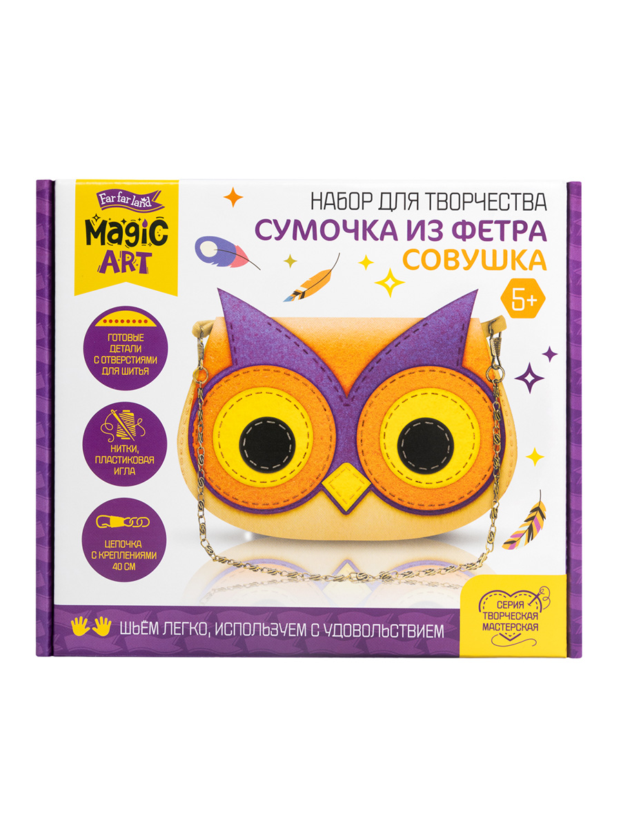 С помощью набора для творчества Сумочка из фетра "Совушка" ребенок сможет сшить необычную сумочку себе или в подарок.