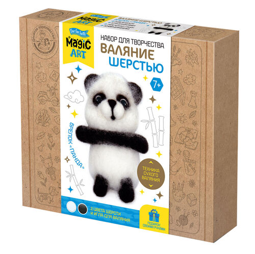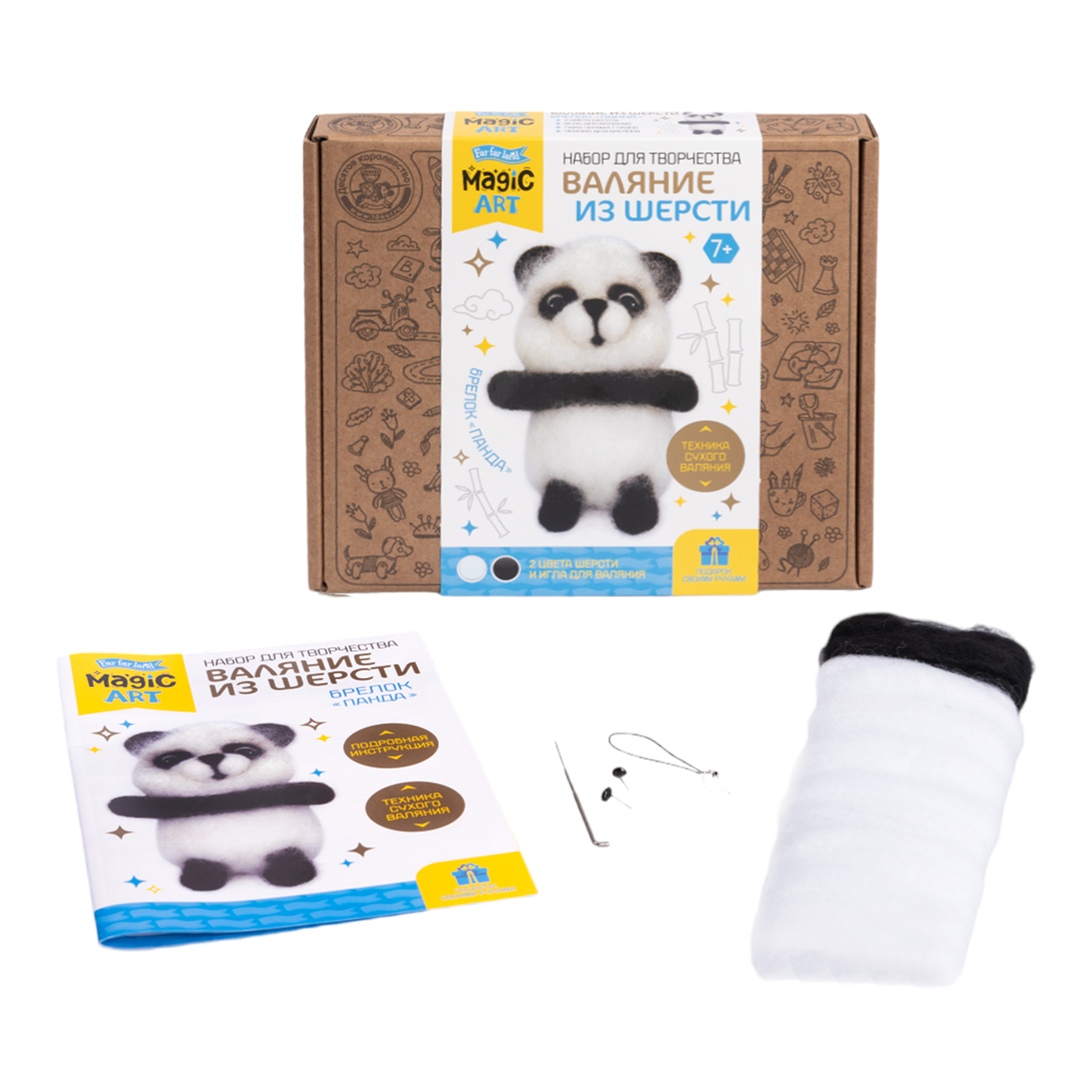 Набор для валяния "Панда" включает все необходимое для создания игрушки или брелока из шерсти.