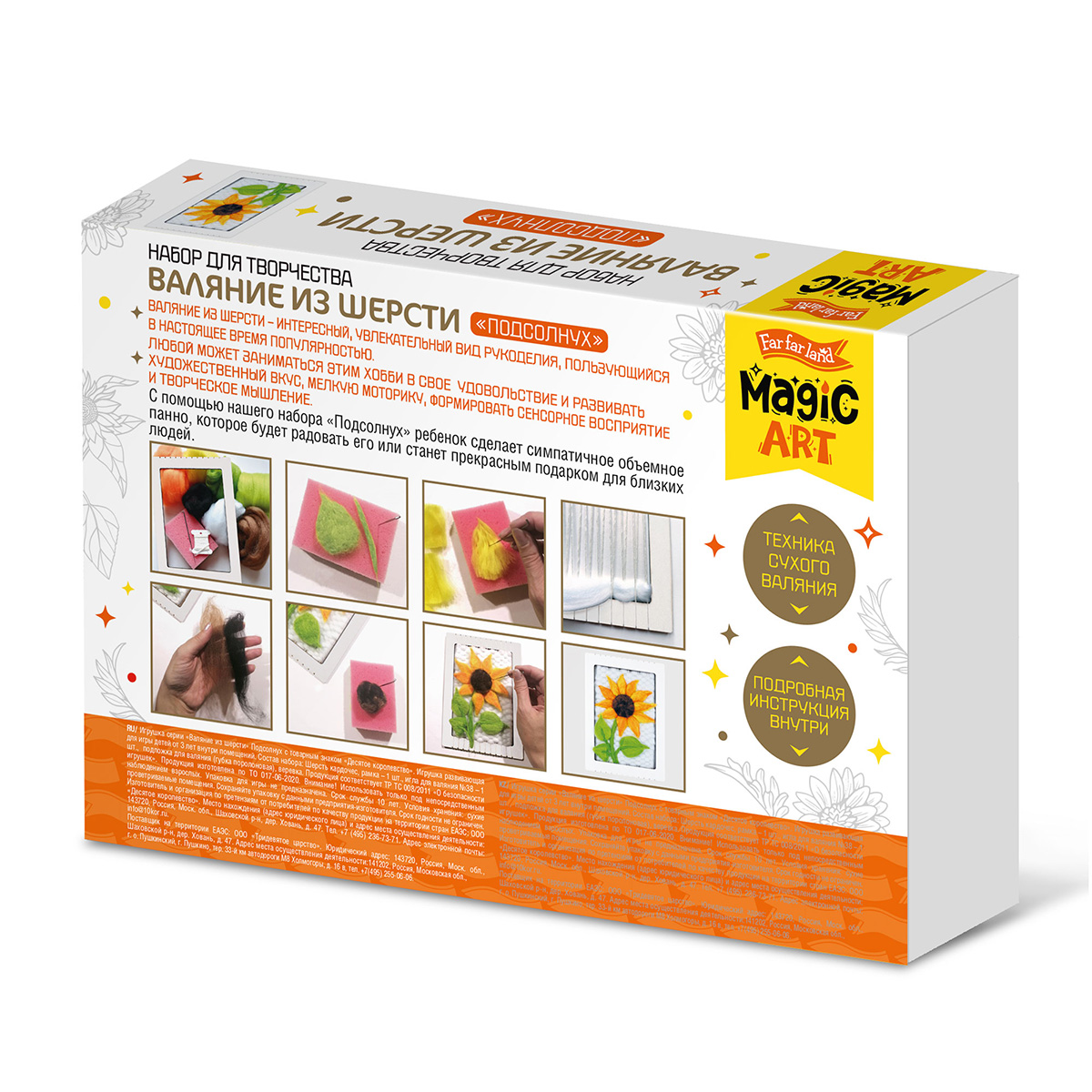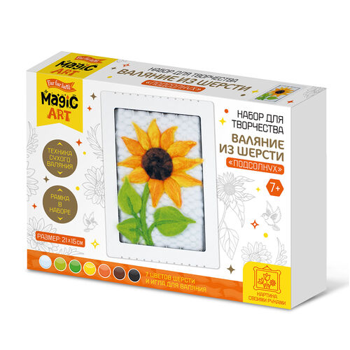 Набор для творчества. Валяние из шерсти «Подсолнух» (с рамкой) развивает художественный вкус, мелкую моторику, формирует сенсорное восприятие и творческое мышление.