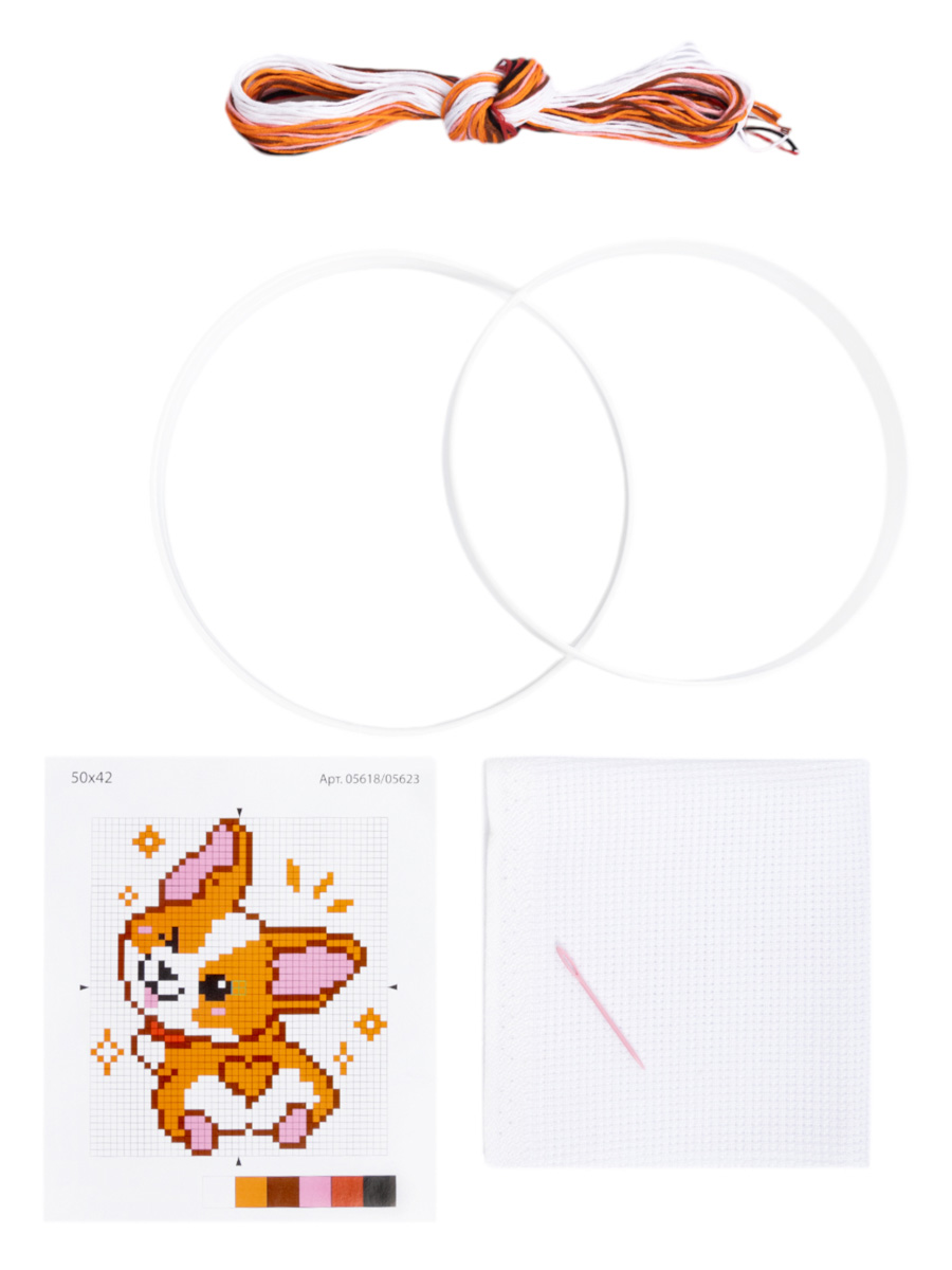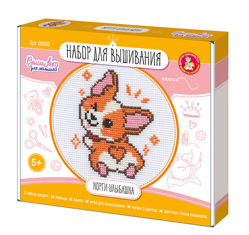 Набор для творчества. Вышивка "Корги-улыбашка" (с пяльцами) 05618