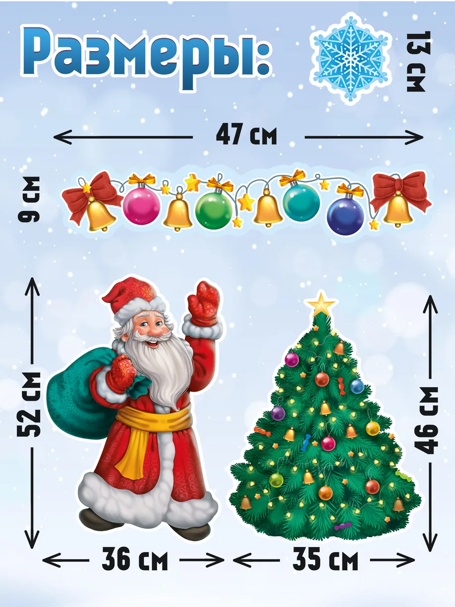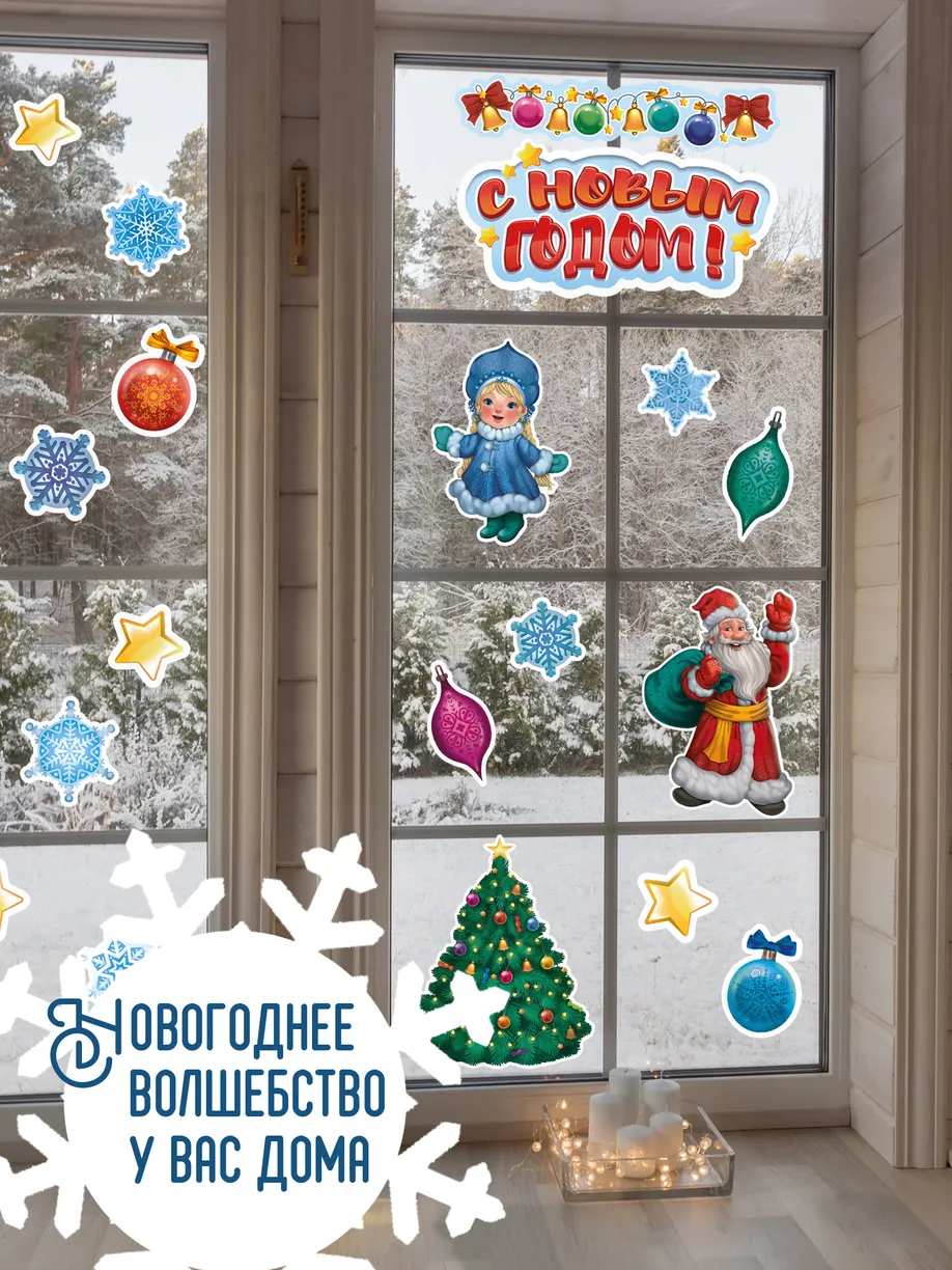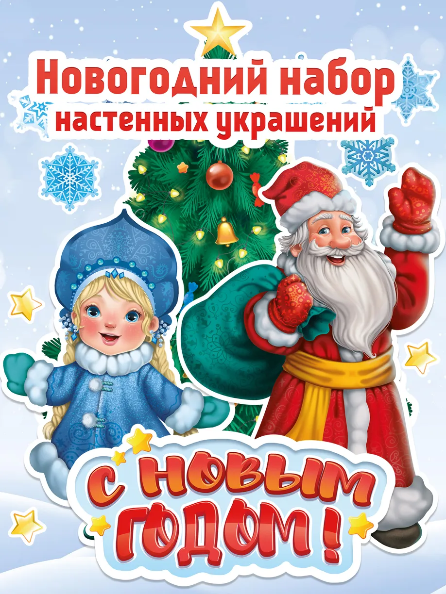 Мини-плакаты на скотче в новогоднем стиле для оформления помещений, стендов и рабочего места. Яркие рисунки порадуют детей и взрослых! В наборе 18 крупных элементов. Плотный картон.