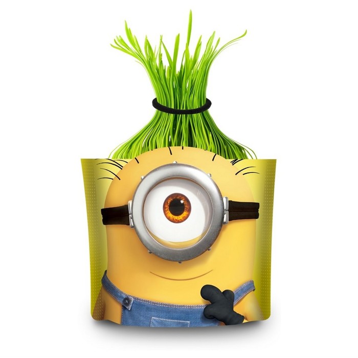 Посадите семена, следуя инструкции, и ухаживайте за своим садом. Уже через несколько дней появятся первые всходы. Выросшую зелень можно стричь и заплетать, тем самым придумывая своему миньону классную прическу.
