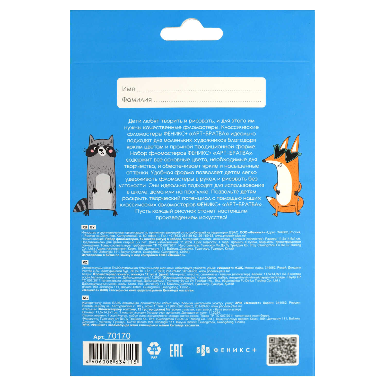 Набор фломастеров арт. 70170 / 12 (12 цв., размер упаковки: 11,5х14,9х1 см, смываемые чернила, вентилируемый колпачок, цвет корпуса: разноцветный, материал: полипропилен, полиэстер, состав чернил: на водной основе, толщина наконечников: 2 мм, картонная коробка с европодвесом и вырубкой).