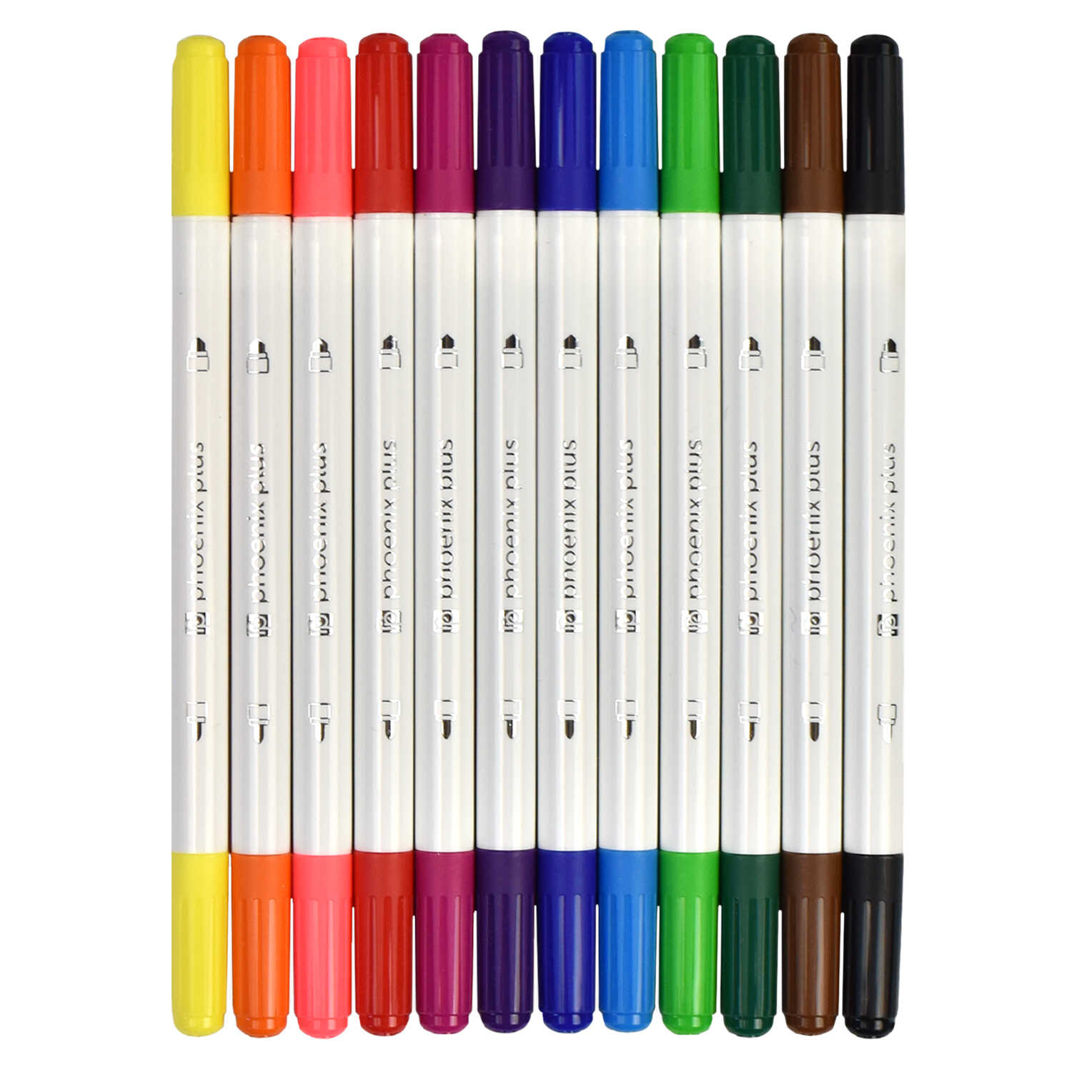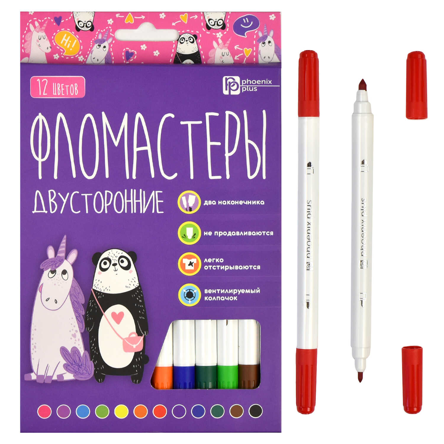 Набор фломастеров арт. 67875 / 12 АРТ-БРАТВА (12 цв., размер упаковки: 11,7х16,5х1 см, двусторонние, смываемые чернила, вентилируемый колпачок, цвет корпуса: белый, материал: полипропилен, полиэстер, полиэтилен, состав чернил: на водной основе, толщина наконечников: "тонкий" - 2,3 мм, "толстый" - 3,6 мм, картонная коробка с европодвесом и вырубкой).