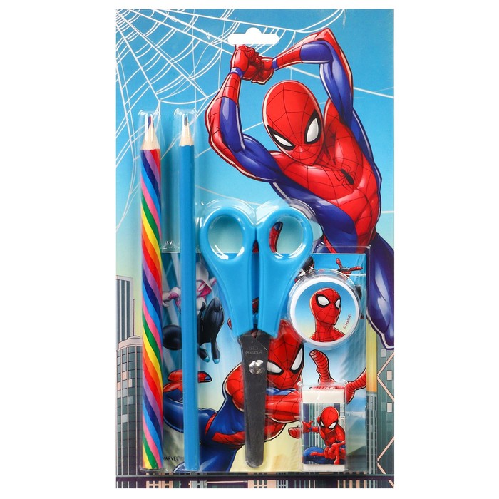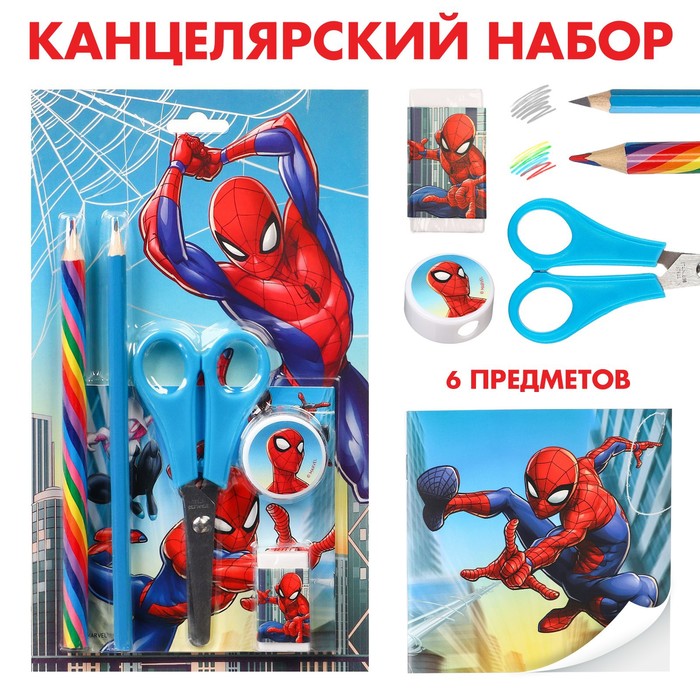Набор канцелярский, Человек-паук, блокнот, точилка, ластик, карандаш, ножницы Набор канцелярский, Человек-паук, блокнот, точилка, ластик, карандаш, ножницы