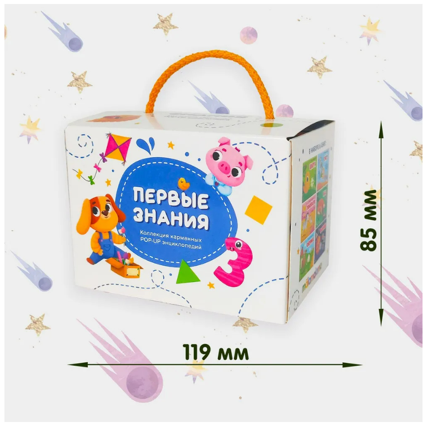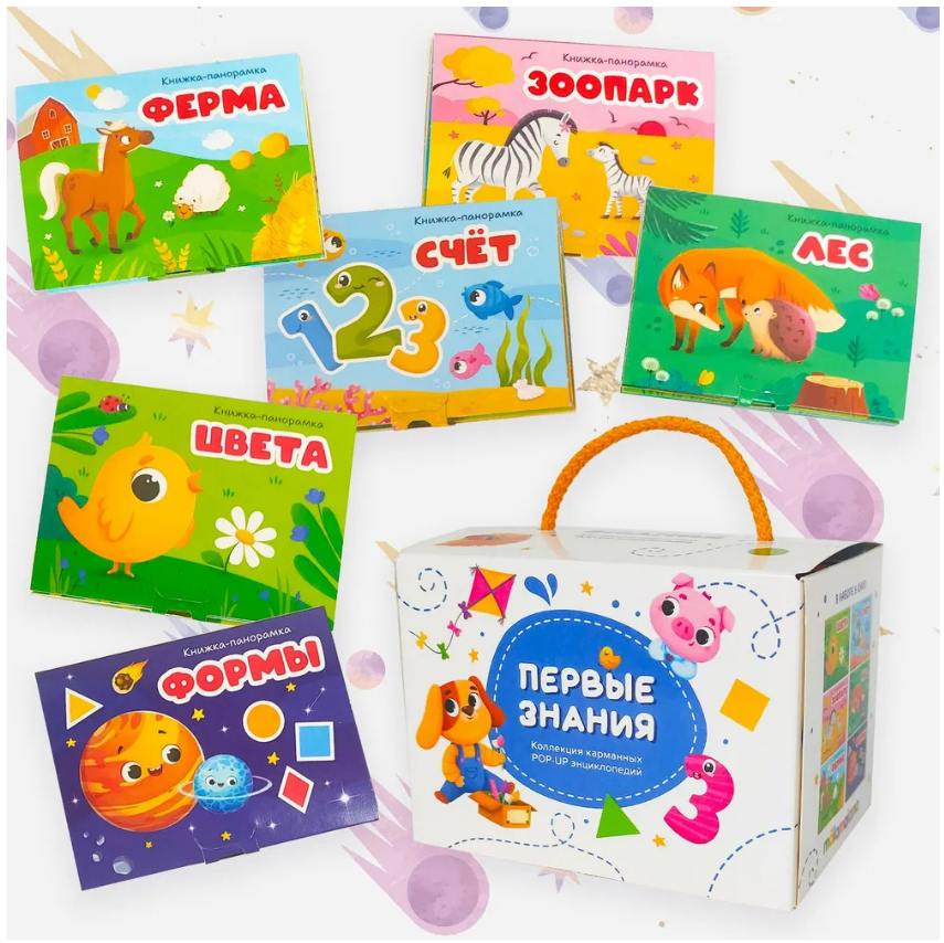 Набор книжек «Первые знания» — это 6 книжек-малюток в компактном сундучке, которые станут настоящей находкой для малыша, только начинающего открывать для себя окружающий мир. В наборе 6 книжек: «Формы», «Счёт», «Дом», «Овощи», «Цвета», «Ягоды и фрукты». Внутри каждой книжки — базовая информация и подборка самых важных слов по теме, яркие фотографии и интересные окошки. Так изучение нового и пополнение словарного запаса станет для ребёнка увлекательным занятием. Книжки имеют миниатюрный формат, их очень удобно хранить и брать с собой, чтобы у малыша всегда была возможность весело и с пользой провести время.