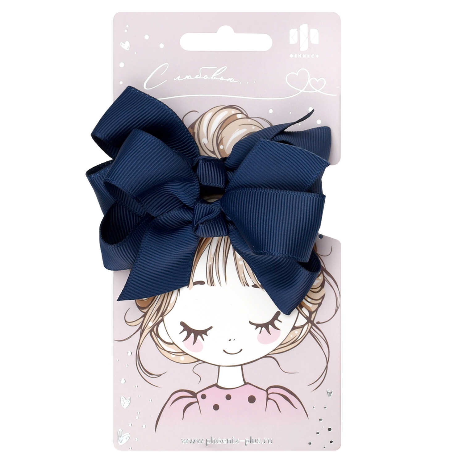 Набор резинок для волос арт. 71813 / 10 БАНТЫ (в наборе: 2шт., б/р, размер банта 7 см, вулканизированная резина, полиэстер, цвет: тёмно-синий, подложка из мелованного картона + ПЭТ-пакет с европодвесом)