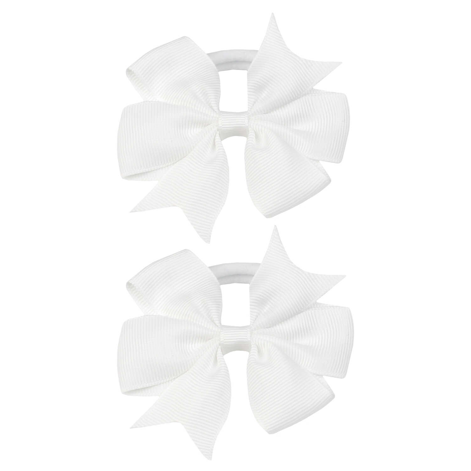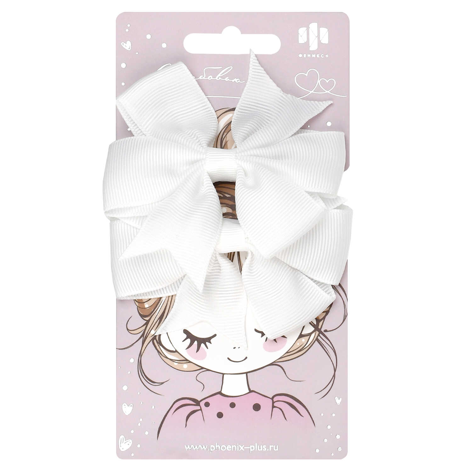 Набор резинок для волос арт. 71816 / 10 БАНТЫ (в наборе: 2шт., б/р, размер банта 6,5 см, вулканизированная резина, полиэстер, цвет: белый, подложка из мелованного картона + ПЭТ-пакет с европодвесом)