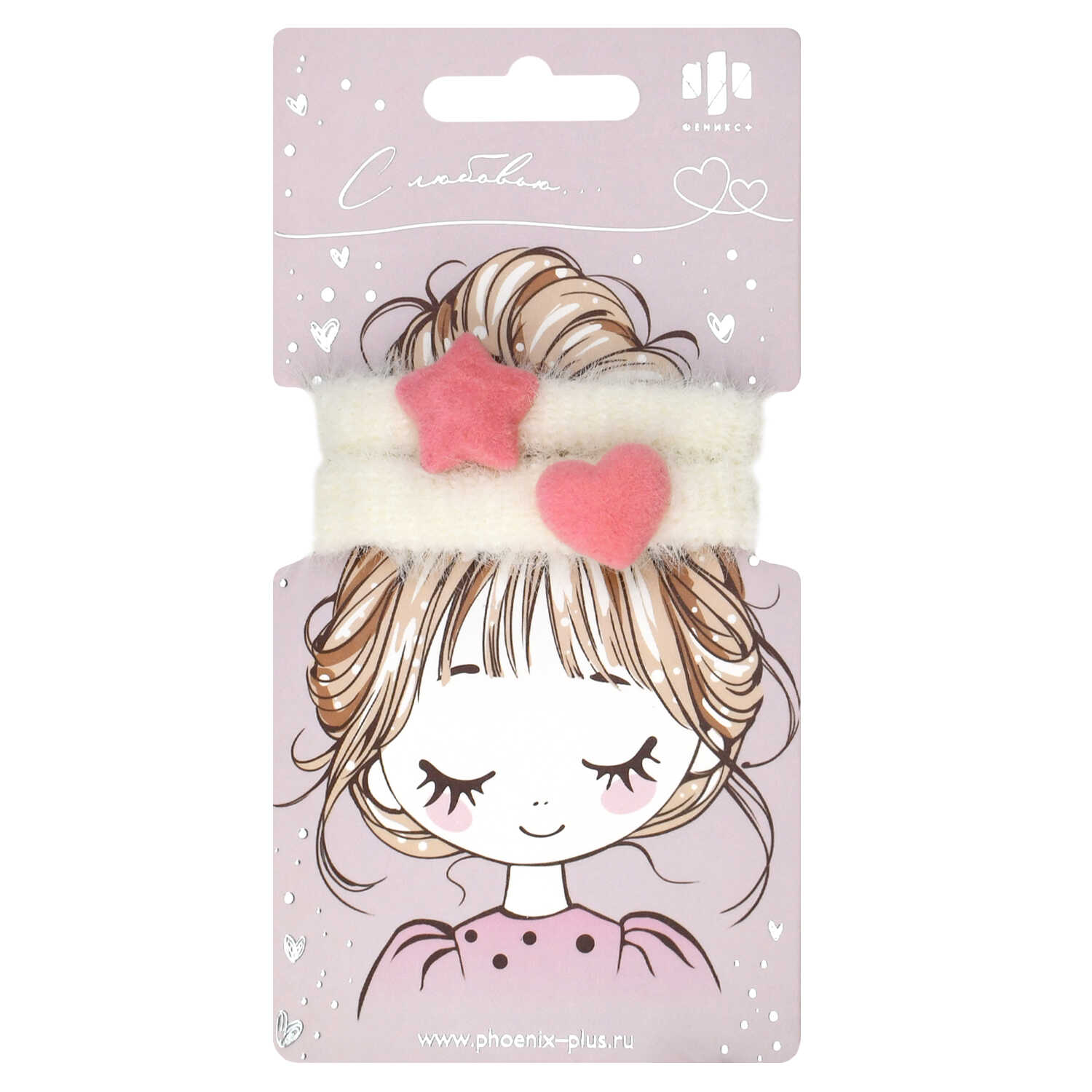 Набор резинок для волос арт. 71821 / 10 ЗВЕЗДОЧКА И СЕРДЕЧКО (в наборе: 2шт., б/р, вулканизированная резина, полиэстер, акрил, цвет: розовый, белый, подложка из мелованного картона + ПЭТ-пакет с европодвесом)