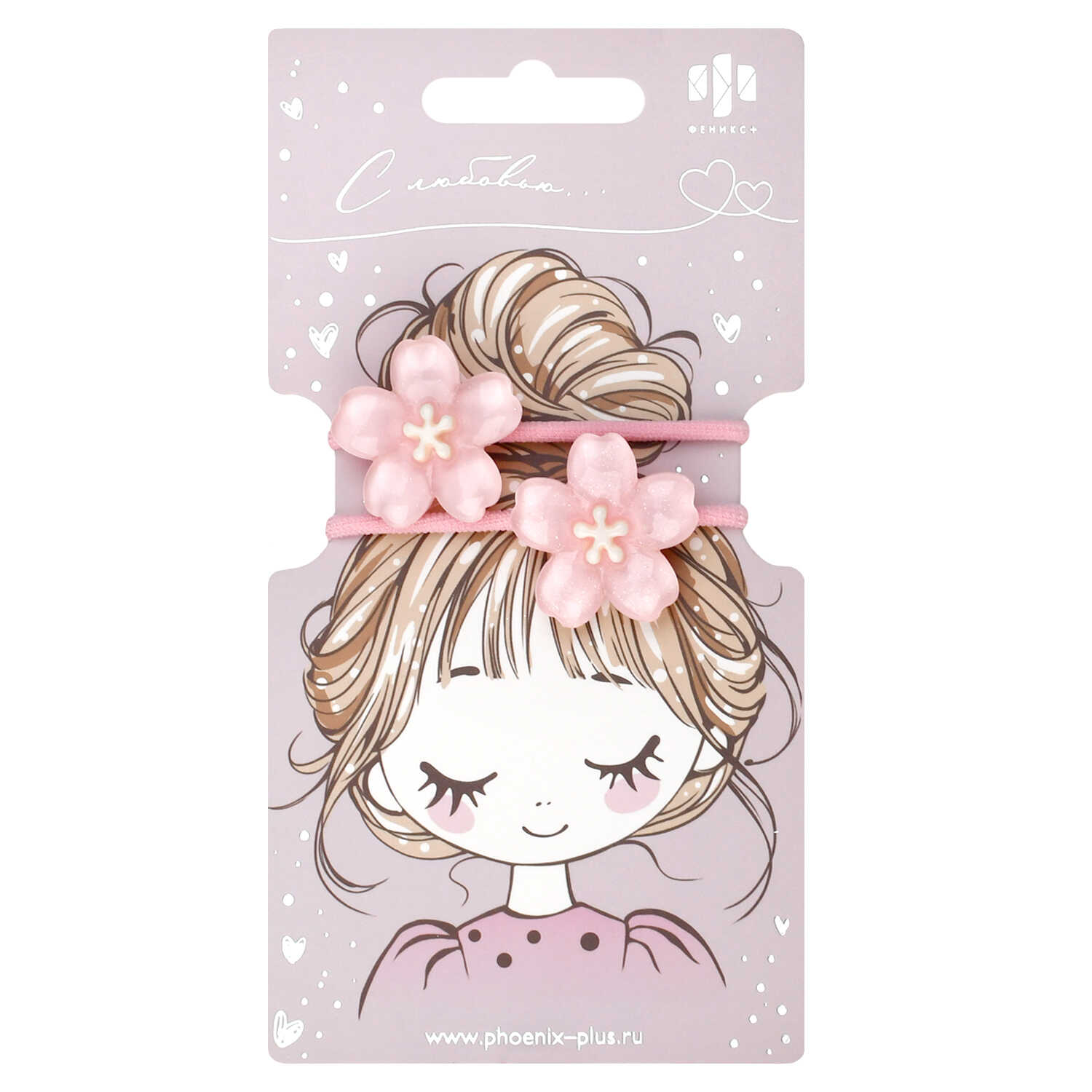 Набор резинок для волос арт. 71843 / 10 ЦВЕТОЧКИ (в наборе: 2шт., б/р, вулканизированная резина, полиэстер, полиуретановая смола, цвет: розовый, подложка из мелованного картона + ПЭТ-пакет с европодвесом)