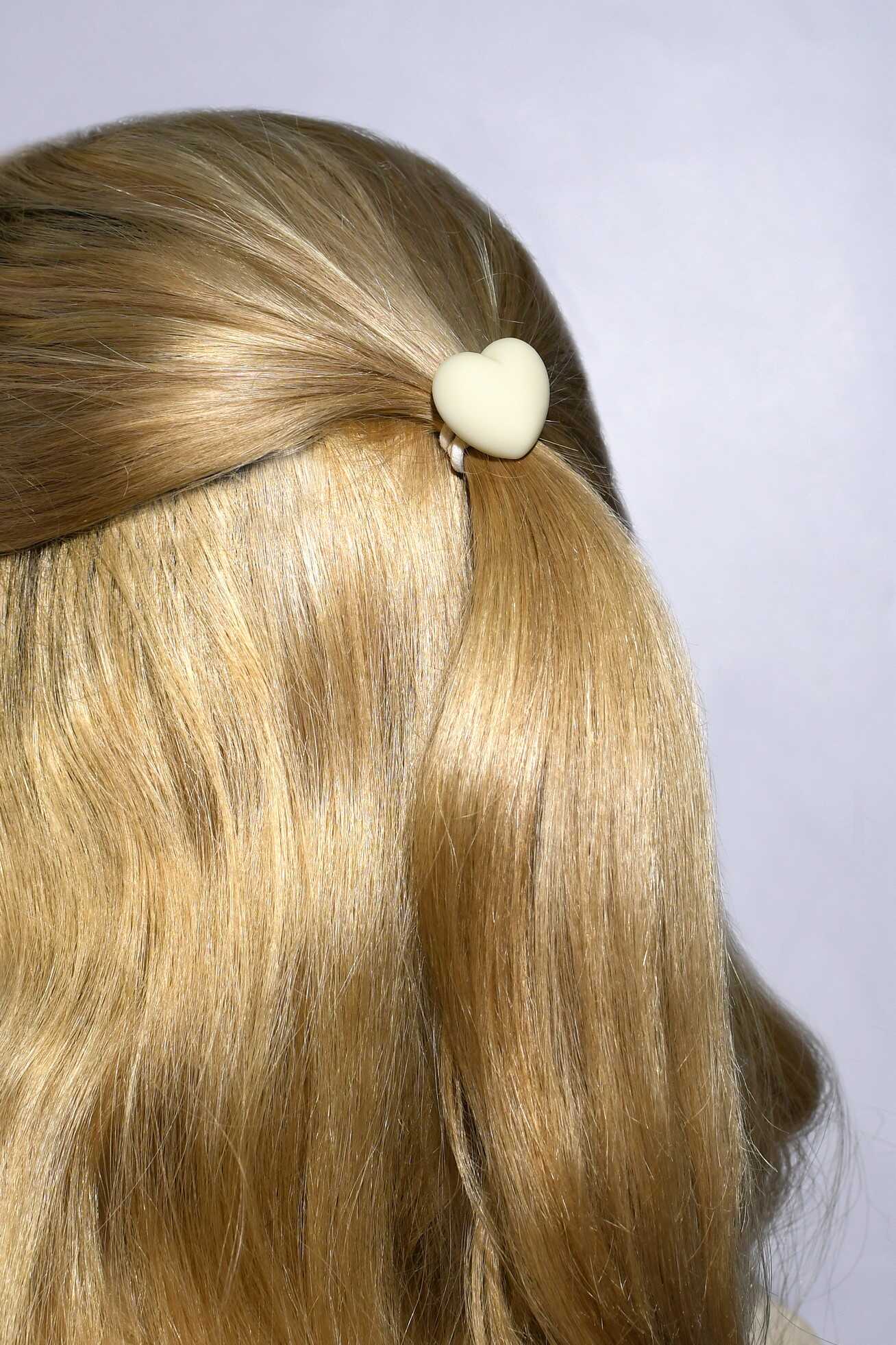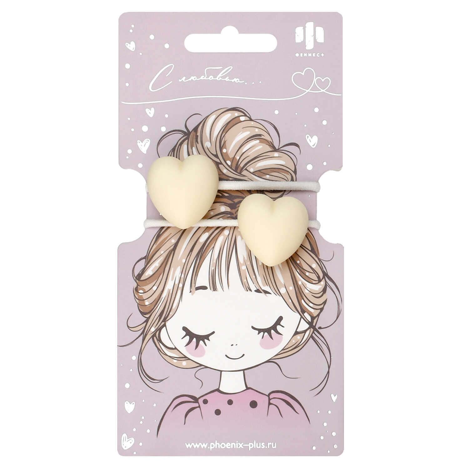 Набор резинок для волос арт. 71848 / 10 СЕРДЕЧКИ (в наборе: 2шт., б/р, вулканизированная резина, полиэстер, полиметилметакрилат, цвет: молочный, подложка из мелованного картона + ПЭТ-пакет с европодвесом)