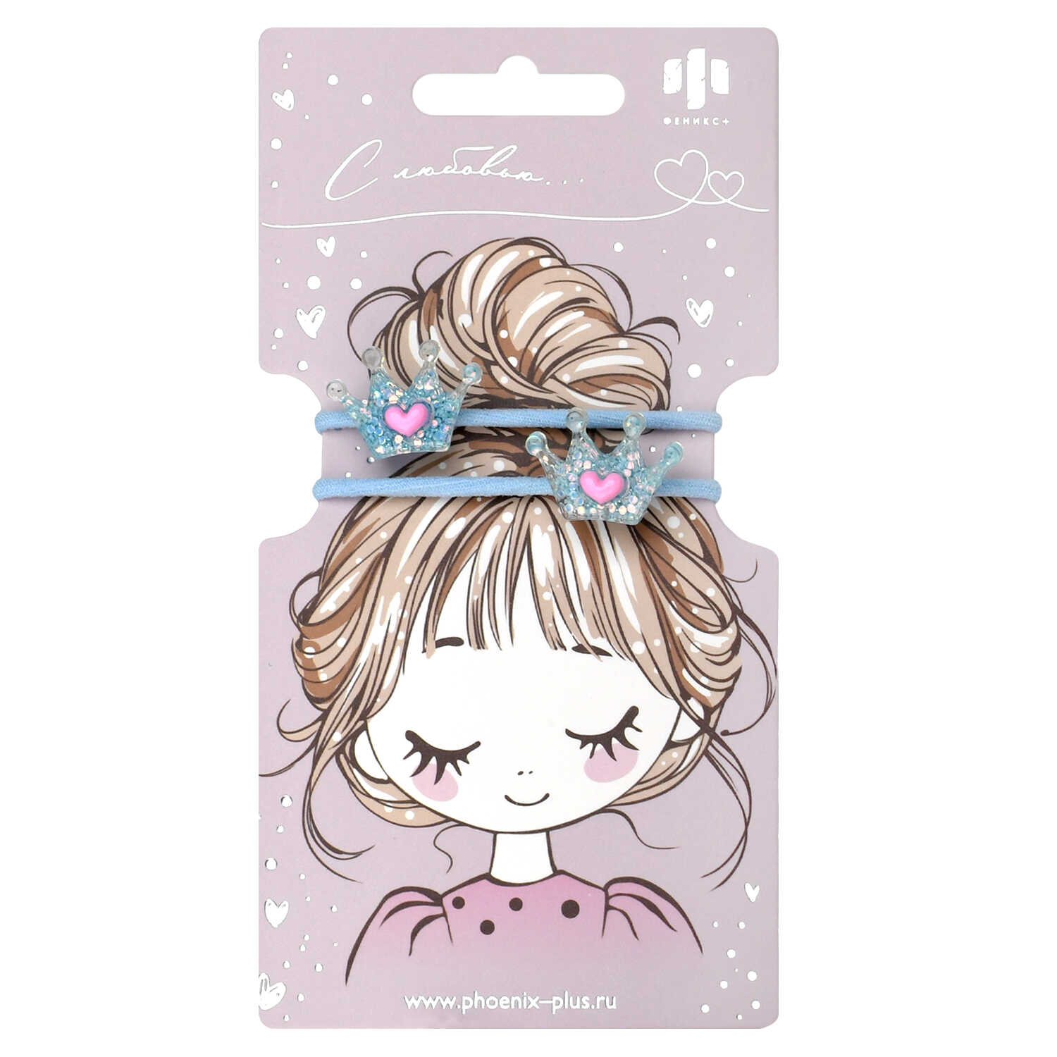 Набор резинок для волос арт. 71854 / 10 КОРОНЫ (в наборе: 2шт., б/р, вулканизированная резина, полиэстер, полимерная смола, цвет: голубой, подложка из мелованного картона + ПЭТ-пакет с европодвесом)