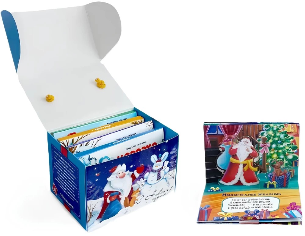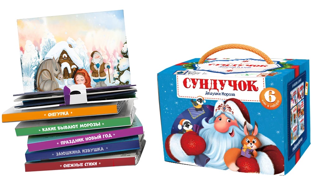 Набор «Сундучок Дедушки Мороза» — это коллекция из 6 миниатюрных книжек-панорамок в подарочном сундучке.