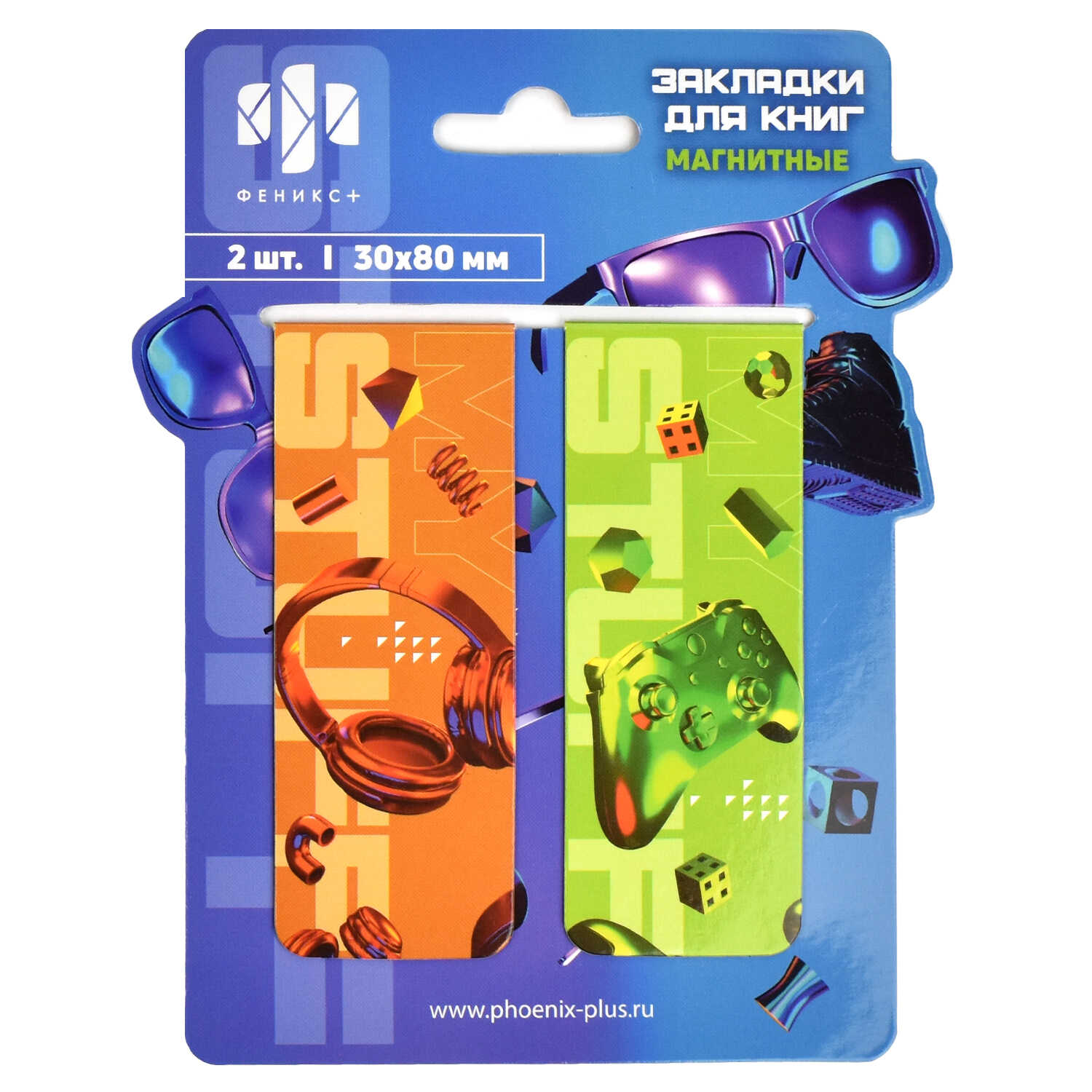 Набор закладок магнитных для книг арт. 65053/К / 100 ЯРКИЕ ДЕТАЛИ (2 шт. в наборе, размер 30x80 мм, материал: мелованная бумага, ферроагломерированный полимер; цвет: зелёный, оранжевый, декор: полноцветный дизайн, особенности: глянцевая ламинация, индивидуальная упаковка: подложка с европодвесом из мелованного картона + ПЭТ-пакет)