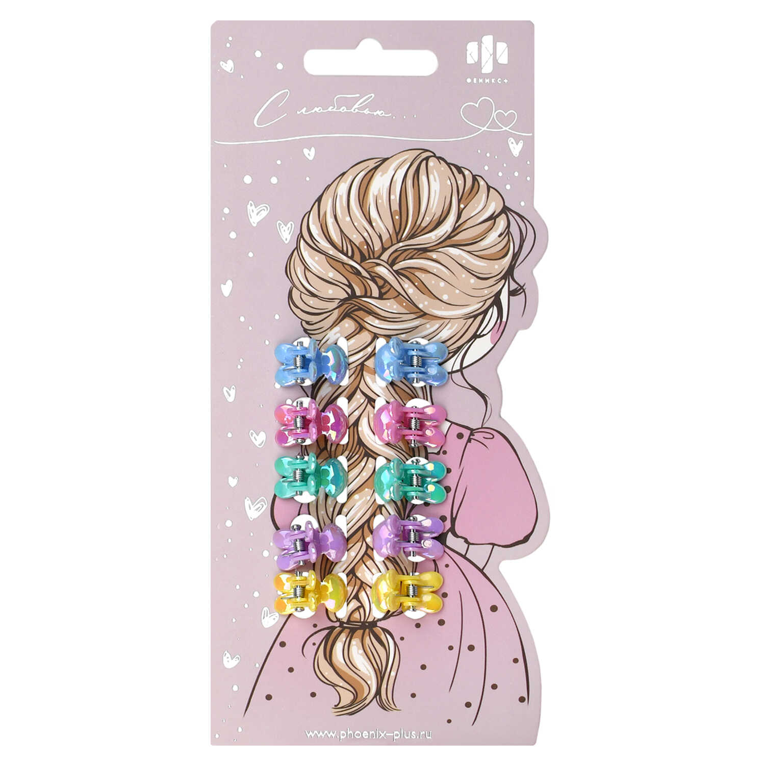 Набор заколок для волос «крабик», глянцевые, перламутровые, арт. 71807 / 10 ЗВЕЗДОЧКИ (в наборе: 10шт., 1,3 см, полистирол, цвет: голубой, жёлтый, изумрудный, оранжевый, розовый, подложка из мелованного картона + ПЭТ-пакет с европодвесом)
