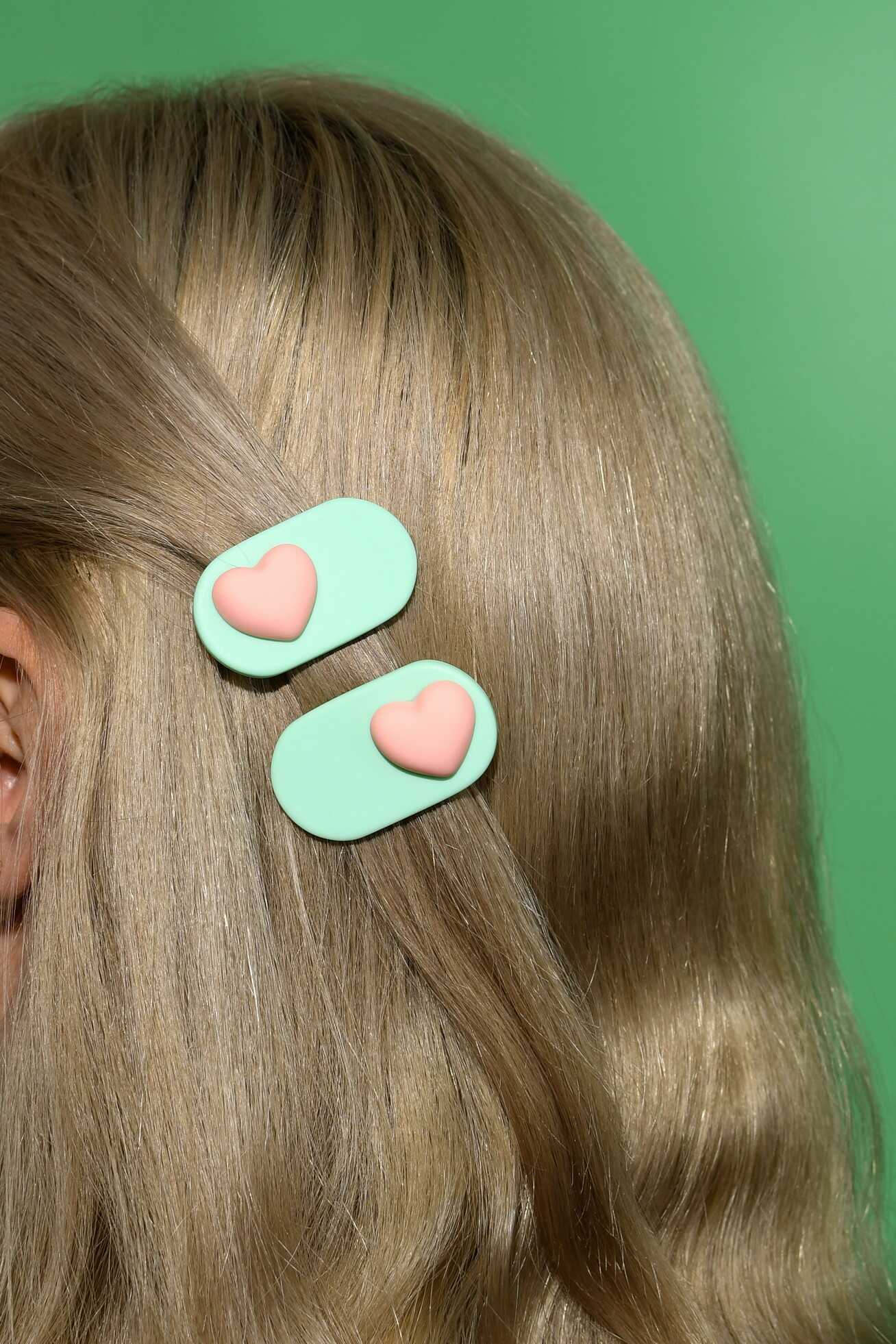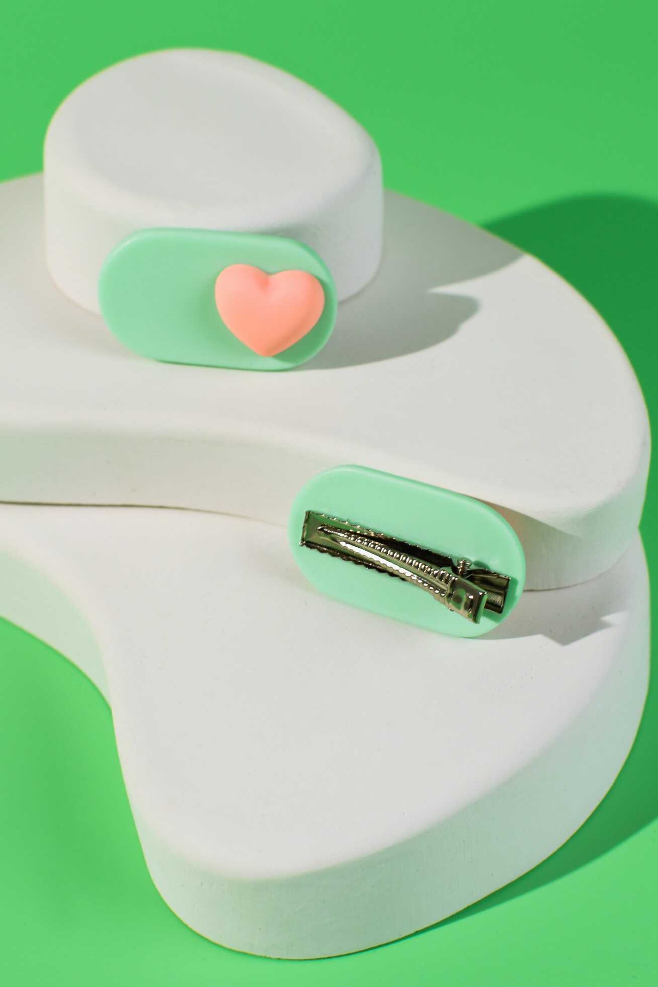 Набор заколок для волос «зажим», арт. 71779 / 10 СЕРДЕЧКИ (в наборе: 2шт., 3,9 см, черный металл, полиметилметакрилат, цвет: мятный, розовый, подложка из мелованного картона + ПЭТ-пакет с европодвесом)