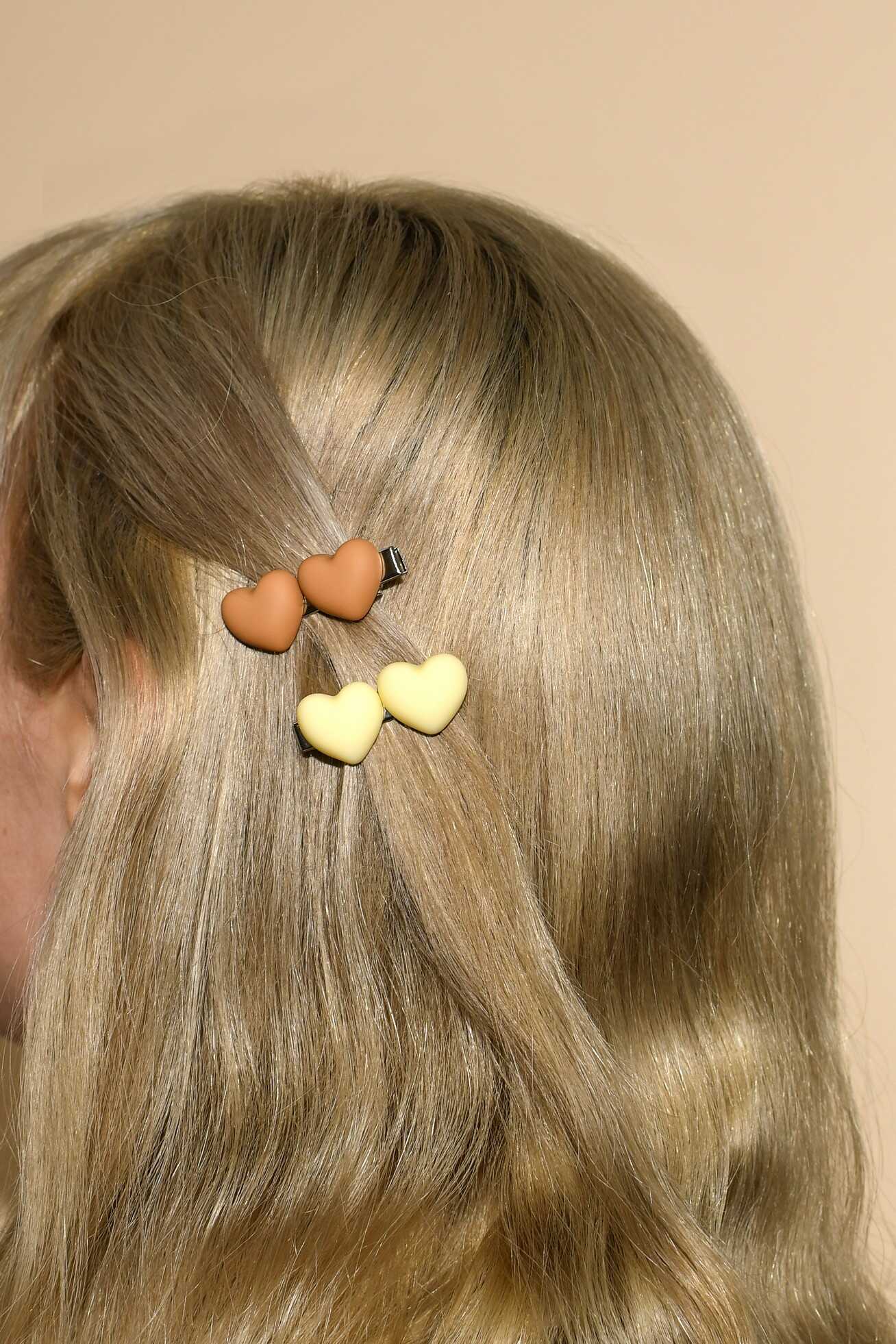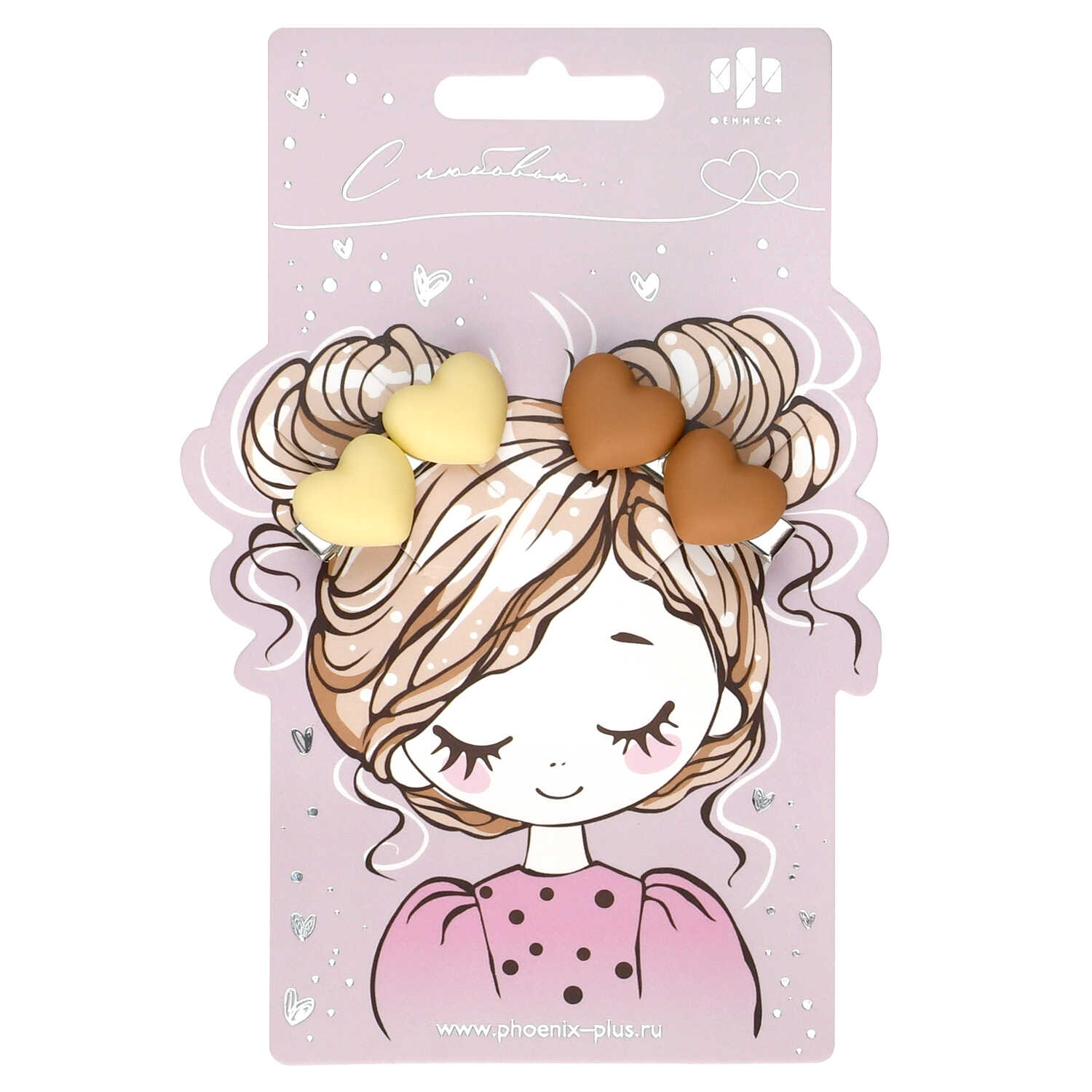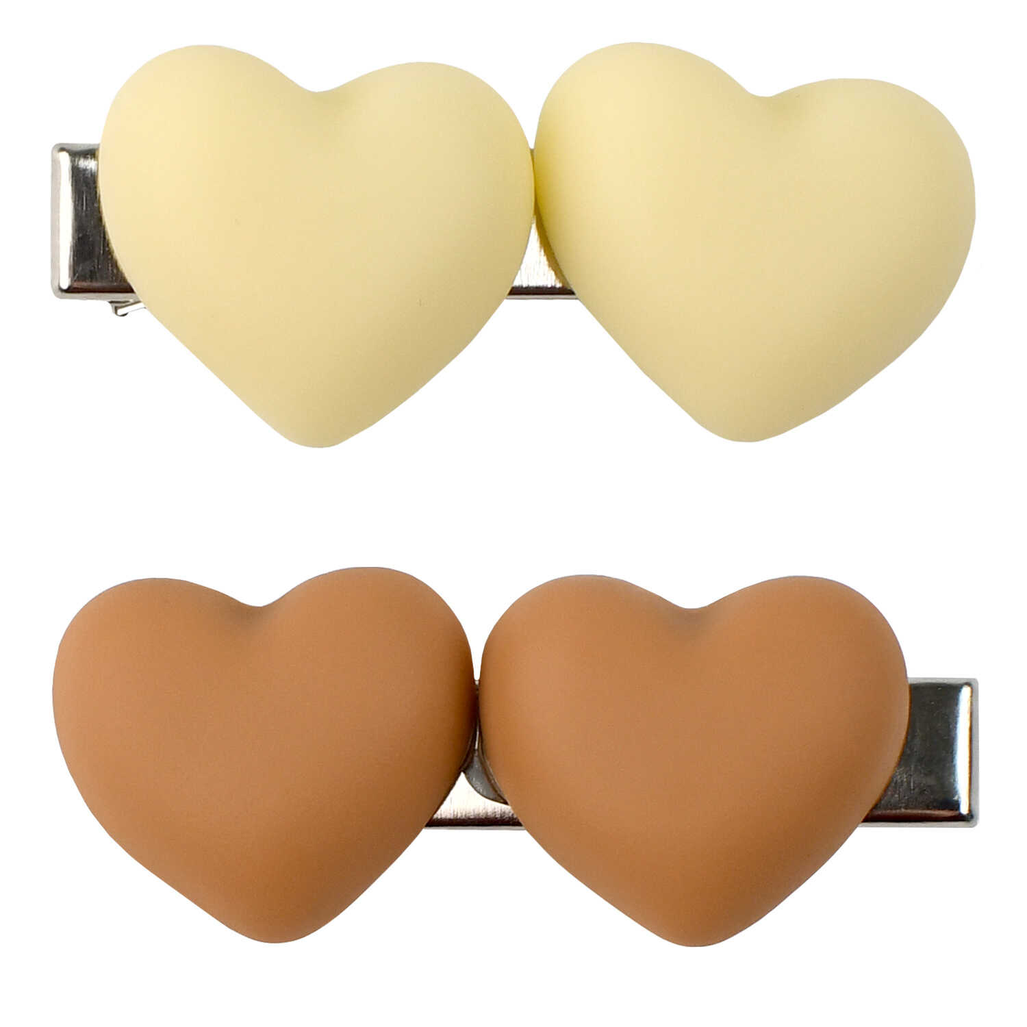 Набор заколок для волос «зажим», арт. 71783 / 10 СЕРДЕЧКИ (в наборе: 2шт., 4 см, черный металл, полиметилметакрилат, цвет: коричневый, молочный, подложка из мелованного картона + ПЭТ-пакет с европодвесом)