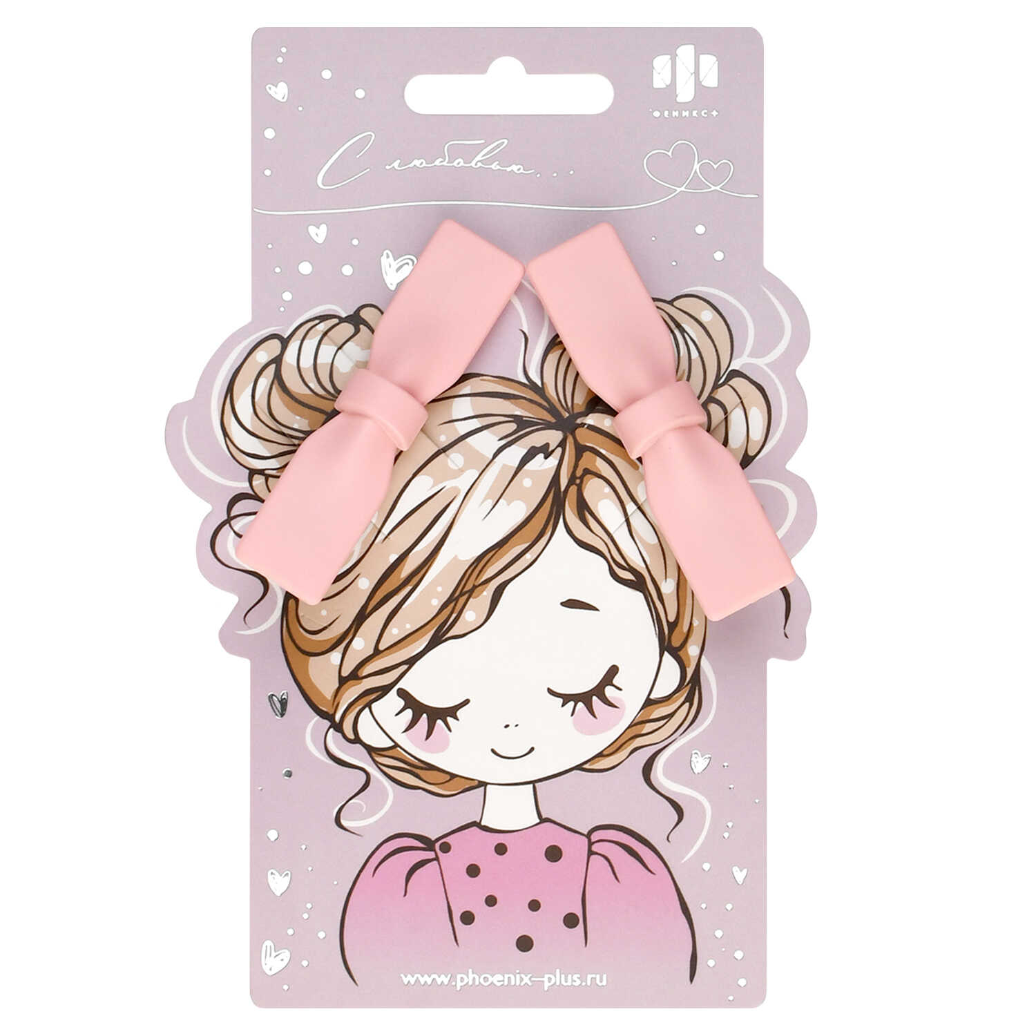 Набор заколок для волос «зажим», арт. 71787 / 10 БАНТИКИ (в наборе: 2шт., 6,3 см, черный металл, полиметилметакрилат, цвет: розовый, подложка из мелованного картона + ПЭТ-пакет с европодвесом)